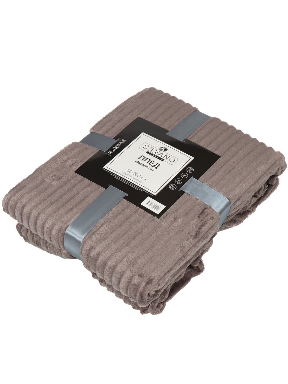 Плед евро 200х220 см Silvano Неаполь Полоски: уют, тепло и стиль для спальни или гостиной. Толстый велсофт жаккард, шоколадный цвет, выгодная цена.