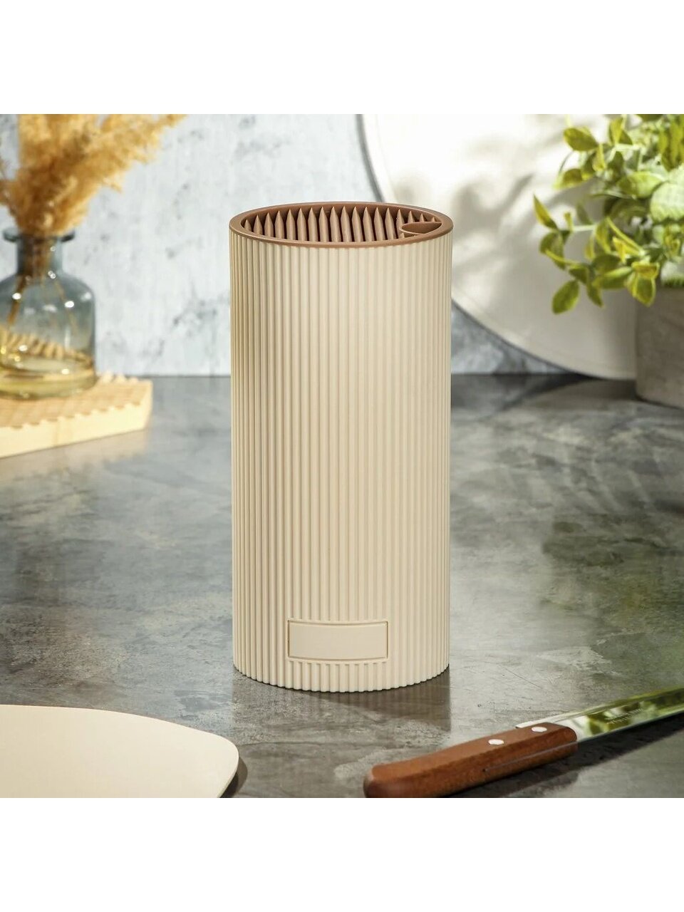 Откройте для себя идеальное решение для хранения ножей на кухне! Подставка для ножей из пластика высотой 22 см, модель Y4-8716, станет незаменимым помощником в организации пространства на кухне. Элегантный бежевый оттенок и цилиндрическая форма этой подставки гармонично впишутся в любой интерьер, добавляя нотку современности и стиля.
