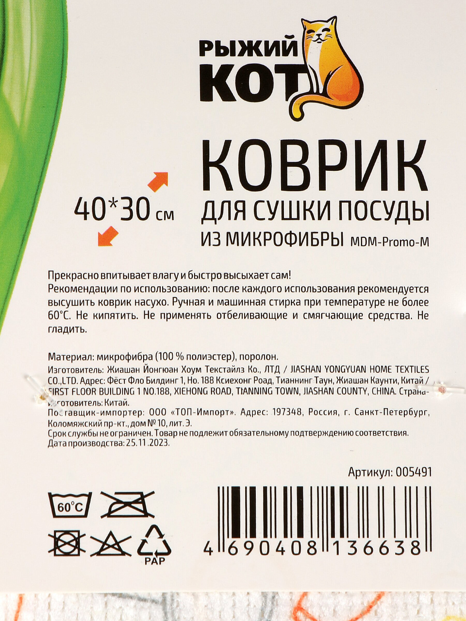 Вы можете приобрести «Коврик для сушки посуды микрофибра, 40х50 см, MDM-Promo-M, 310261» и другие товары в нашем интернет-магазине в Липецке по низким ценам и с бесплатным самовывозом.