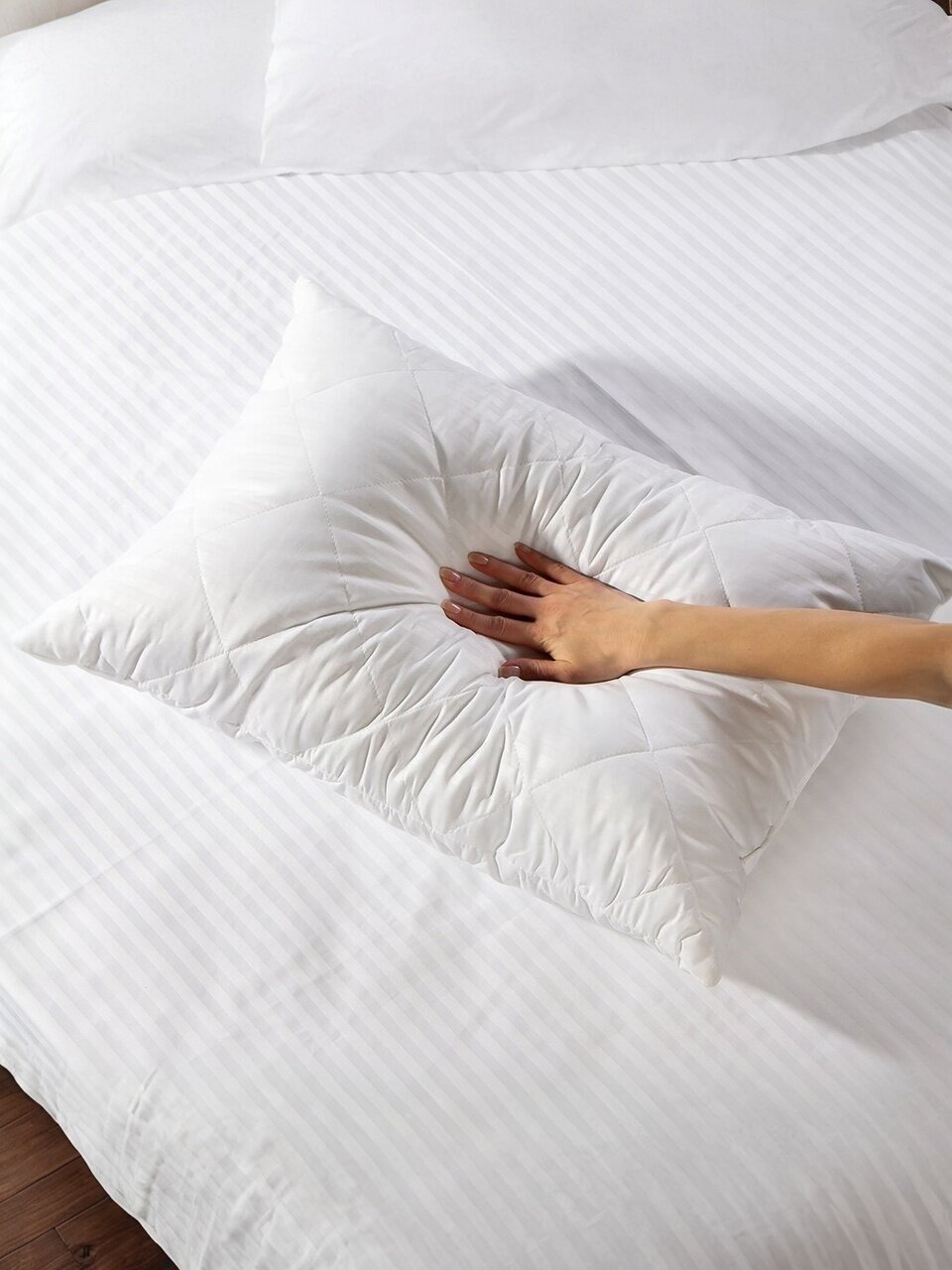 - Практичный размер 50 х 70 см, наполнитель файбер 100% полиэстер и прочный стеганый чехол — легко стирать, быстро сохнет, не теряет форму.