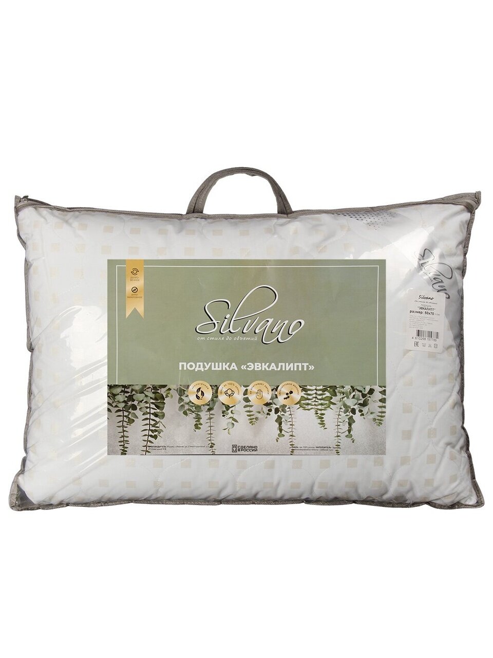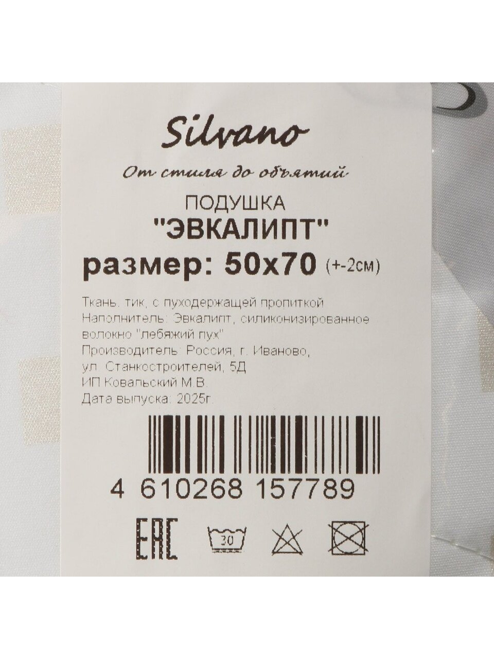 Подушка 50 х 70 см Сильвано: комфорт сна, гипоаллергенный лебяжий искусственный пух, чехол из тика с эвкалиптом — свежесть и поддержка каждый день.