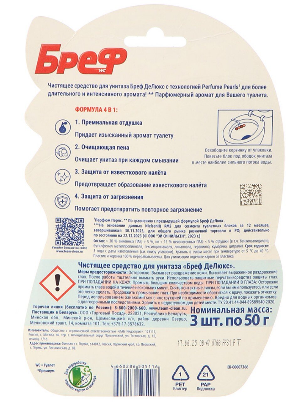 Бреф Делюкс обеспечивает интенсивную свежесть, эффективную защиту от налёта и экономию — не требует частой замены, подходит для дома и дачи, легко устанавливается и не повреждает сантехнику.