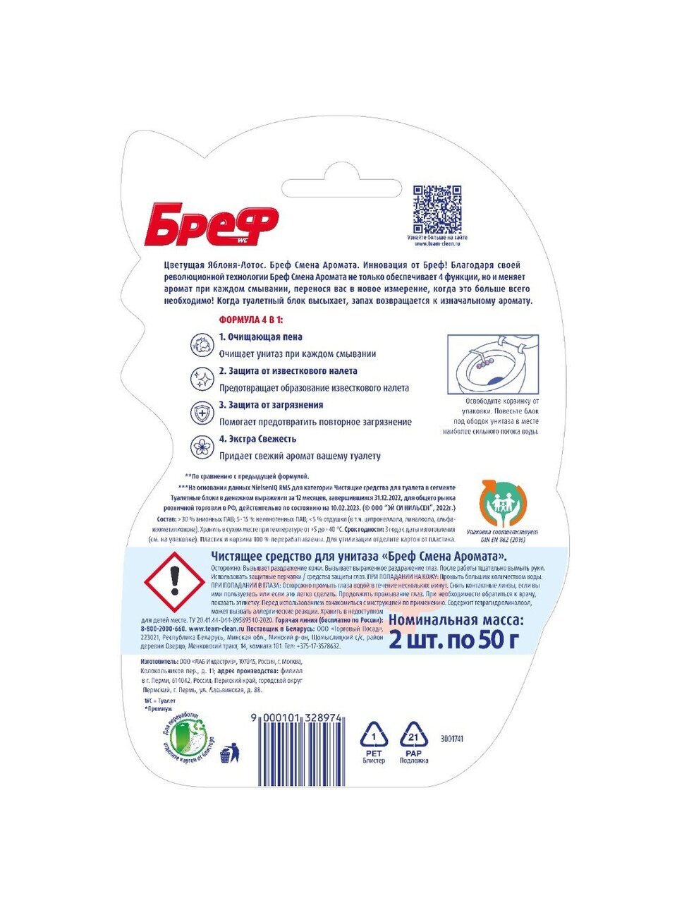 Подвеска для унитаза Бреф, Perfume Switch Цветочный яблоко-лотос, 2 шт, 50 г