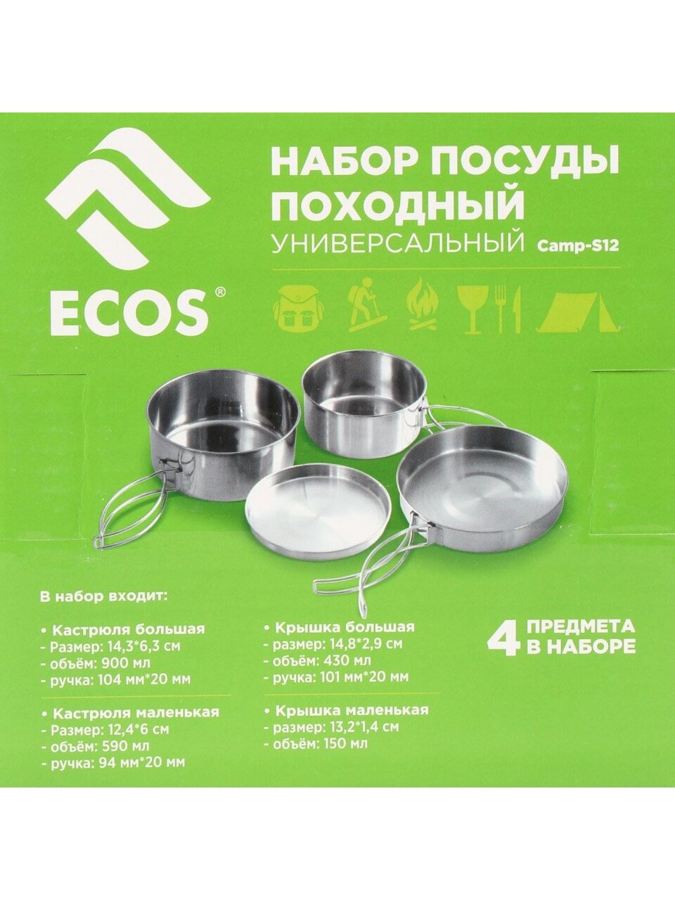 Вы можете приобрести «Набор посуды походный, нержавеющая сталь, 4 предмета, Ecos, Camp-S12, 106941» и другие товары в нашем интернет-магазине в Орле по низким ценам и с бесплатным самовывозом.
