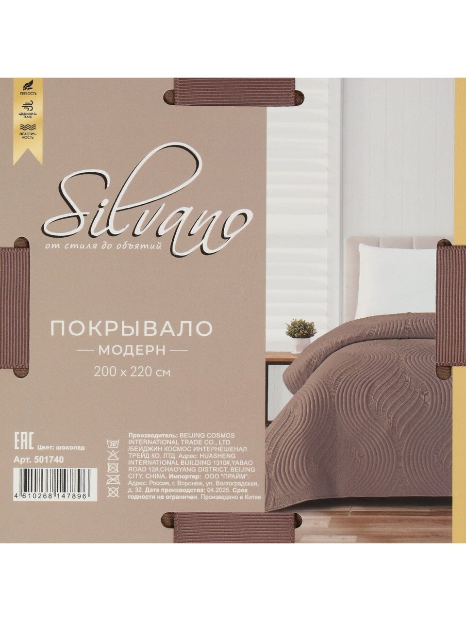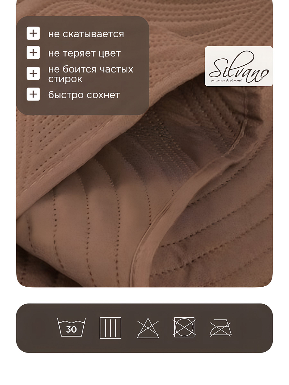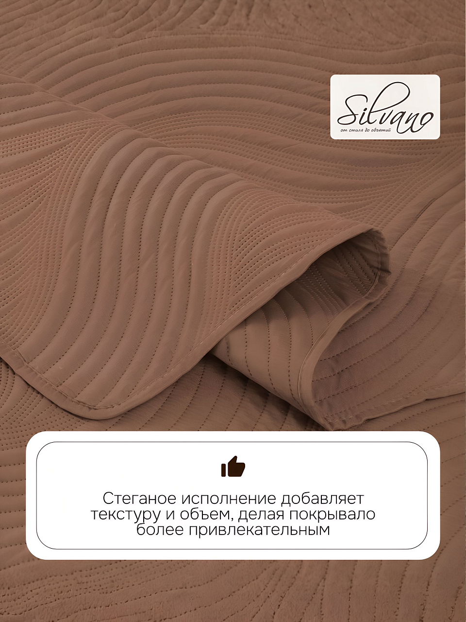Покрывало евро Silvano Модерн — оптимальное решение для тех, кто ищет, какое покрывало выбрать для спальни или гостиной. Благодаря стеганой структуре и плотному полиэстеру оно не скользит, хорошо держит форму и сохраняет внешний вид даже после многократных стирок. Однотонный шоколадный оттенок актуален для современных интерьеров в стиле минимализм, а универсальный размер 200х220 см подходит для большинства стандартных кроватей и диванов.