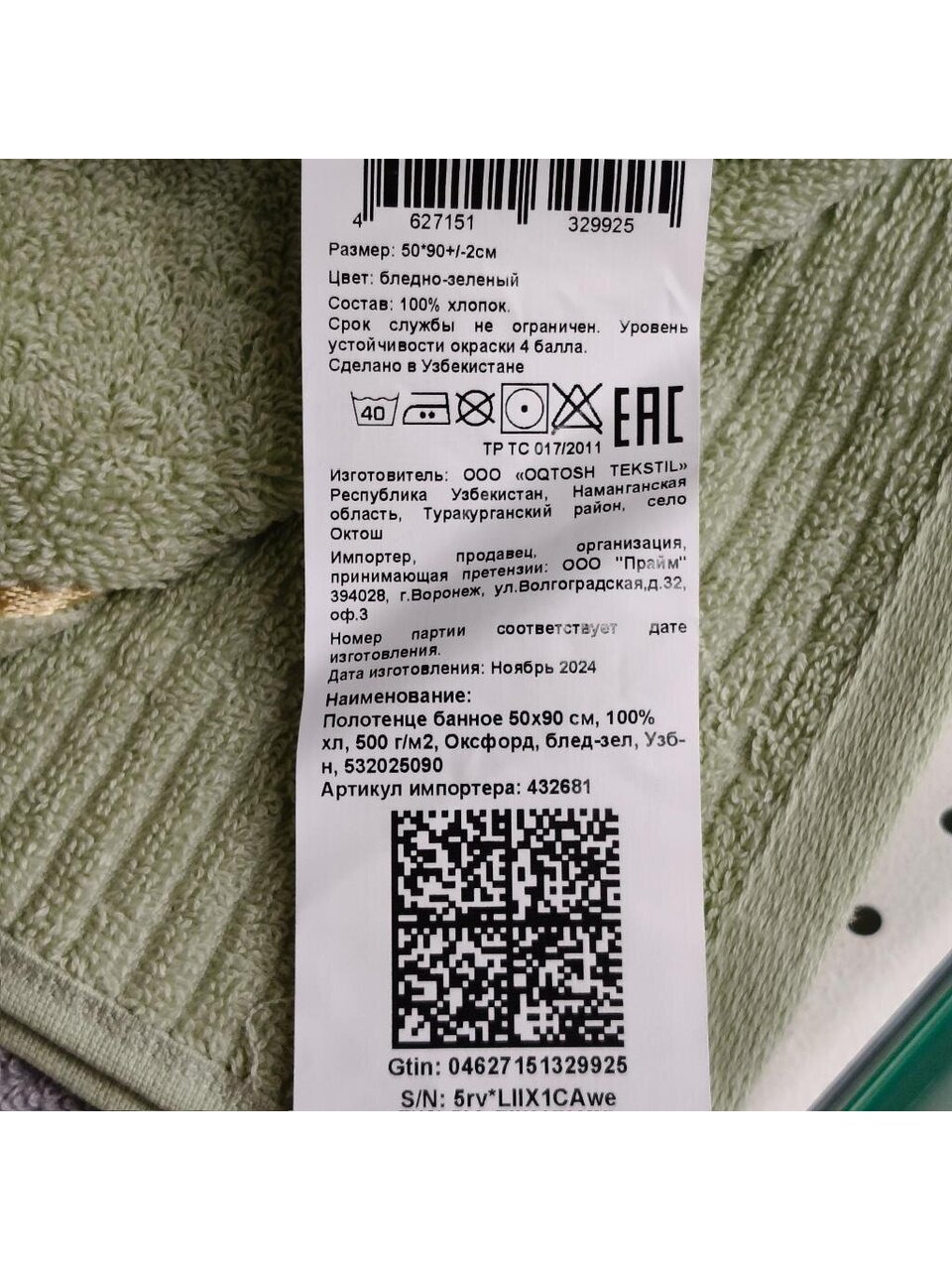 Вы можете приобрести «Полотенце банное 50х90 см, 100% хлопок, 500 г/м2, Оксфорд, бледно-зеленое, Узбекистан, 532025090» и другие товары в нашем интернет-магазине в Клинцах по низким ценам и с бесплатным самовывозом.