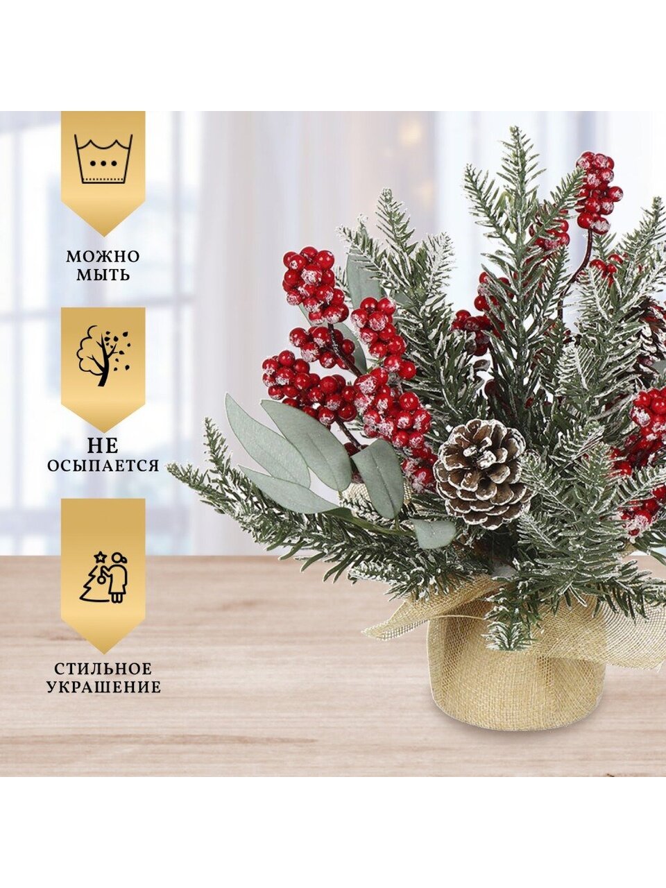 Вы можете приобрести «Композиция новогодняя настольная 27 см, с ягодами и шишками, SYSPS -0823119» и другие товары в нашем интернет-магазине в Твери по низким ценам и с бесплатным самовывозом.
