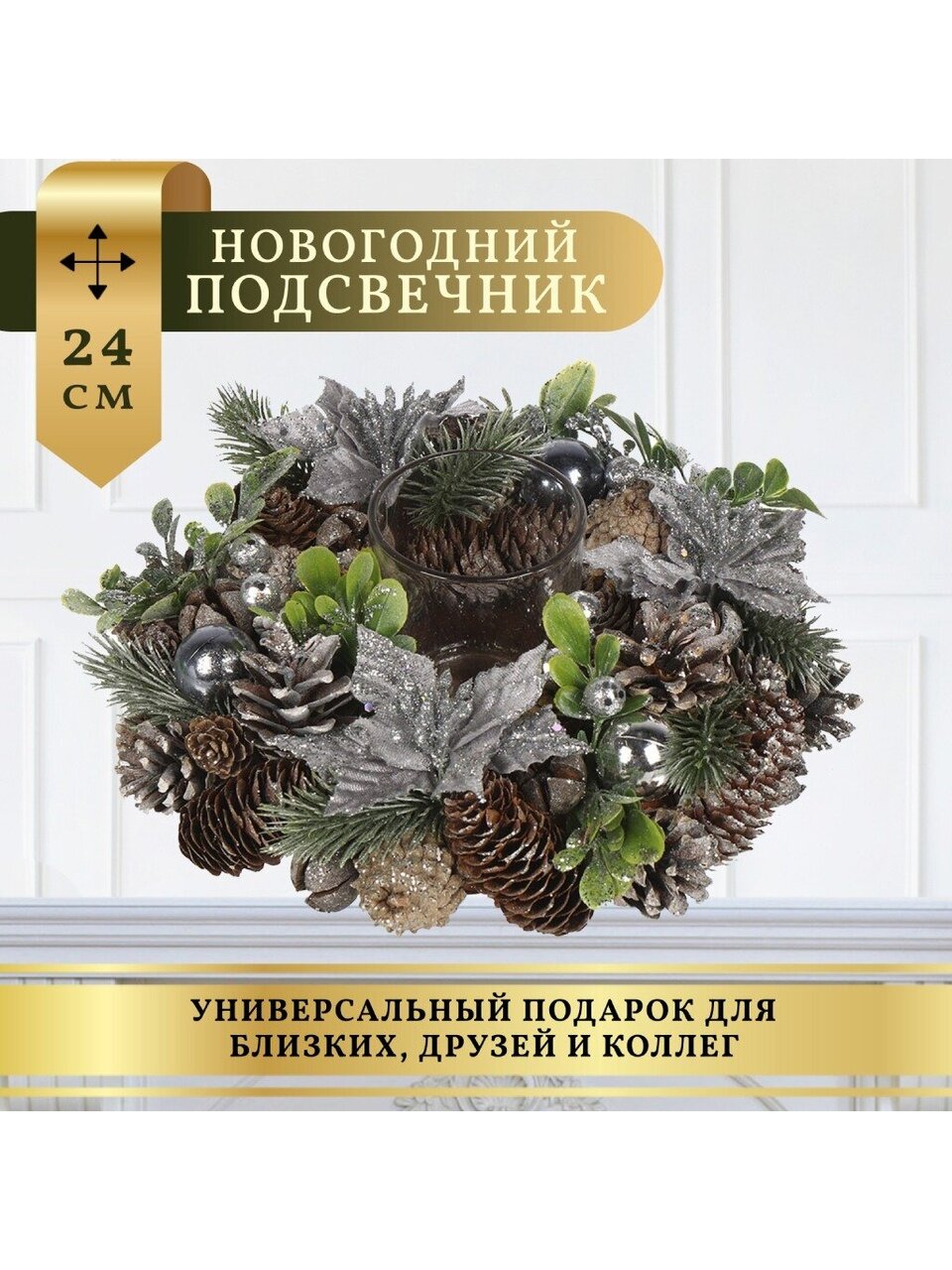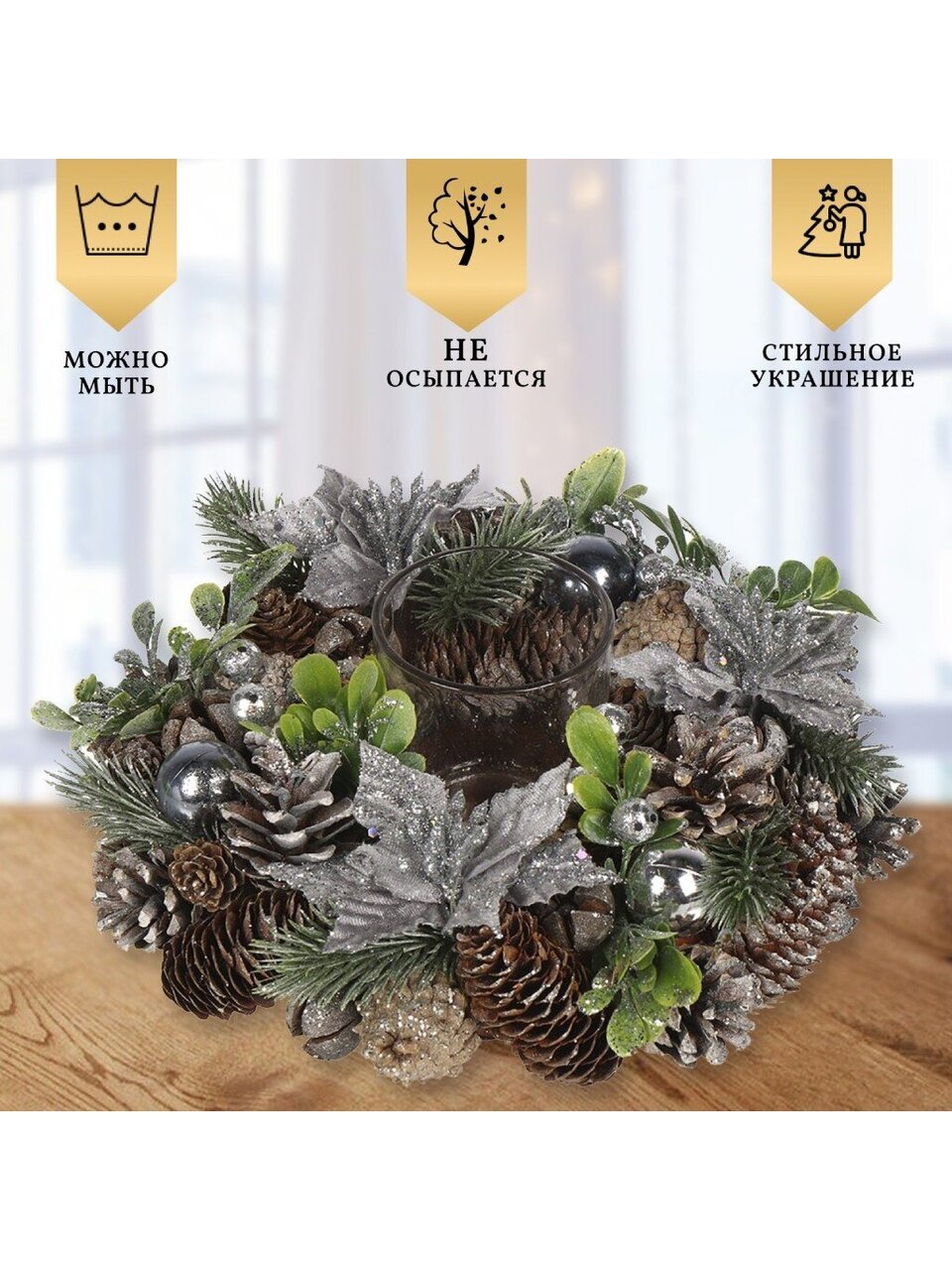 Рождественский венок с подсвечником принесет долгожданный дух зимних праздников, сделает атмосферу в доме уютной, торжественной и элегантной, придаст вашему столу шикарный и роскошный вид, наполненный радостью и волшебством рождественских праздников.