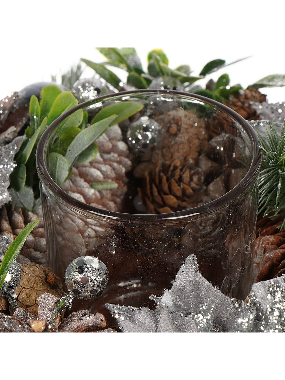- Подсвечник на венке обеспечивает мягкое, теплое освещение, создавая еще более праздничную обстановку.