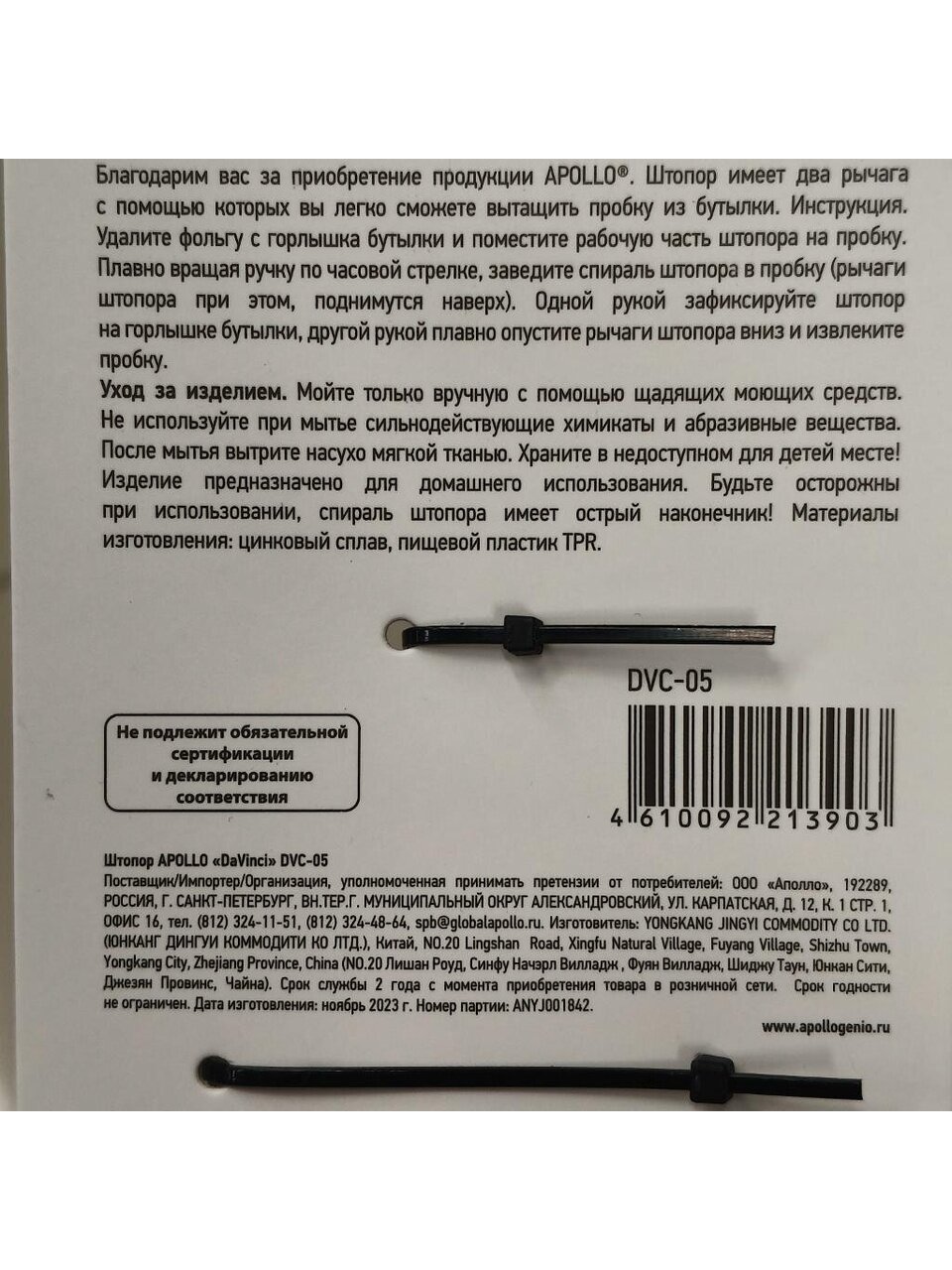 Вы можете приобрести «Штопор нержавеющая сталь, пластик, навеска, Apollo, DaVinci, DVC-05» и другие товары в нашем интернет-магазине в Твери по низким ценам и с бесплатным самовывозом.