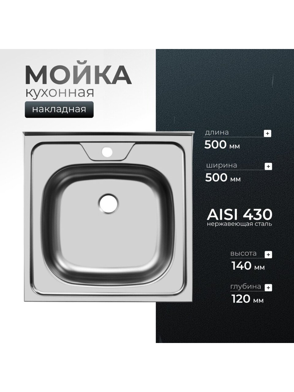 Вы можете приобрести «Мойка кухонная накладная, Ukinox, нержавеющая сталь, 500х500х120 мм, ECO500.500» и другие товары в нашем интернет-магазине в Брянске по низким ценам и с бесплатным самовывозом.