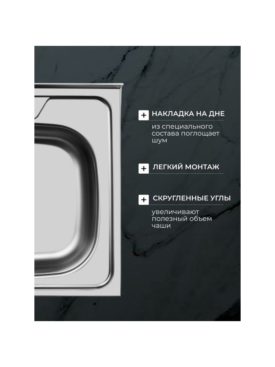 - Накладки на дне мойки из специального состава поглощают шум от льющейся воды.