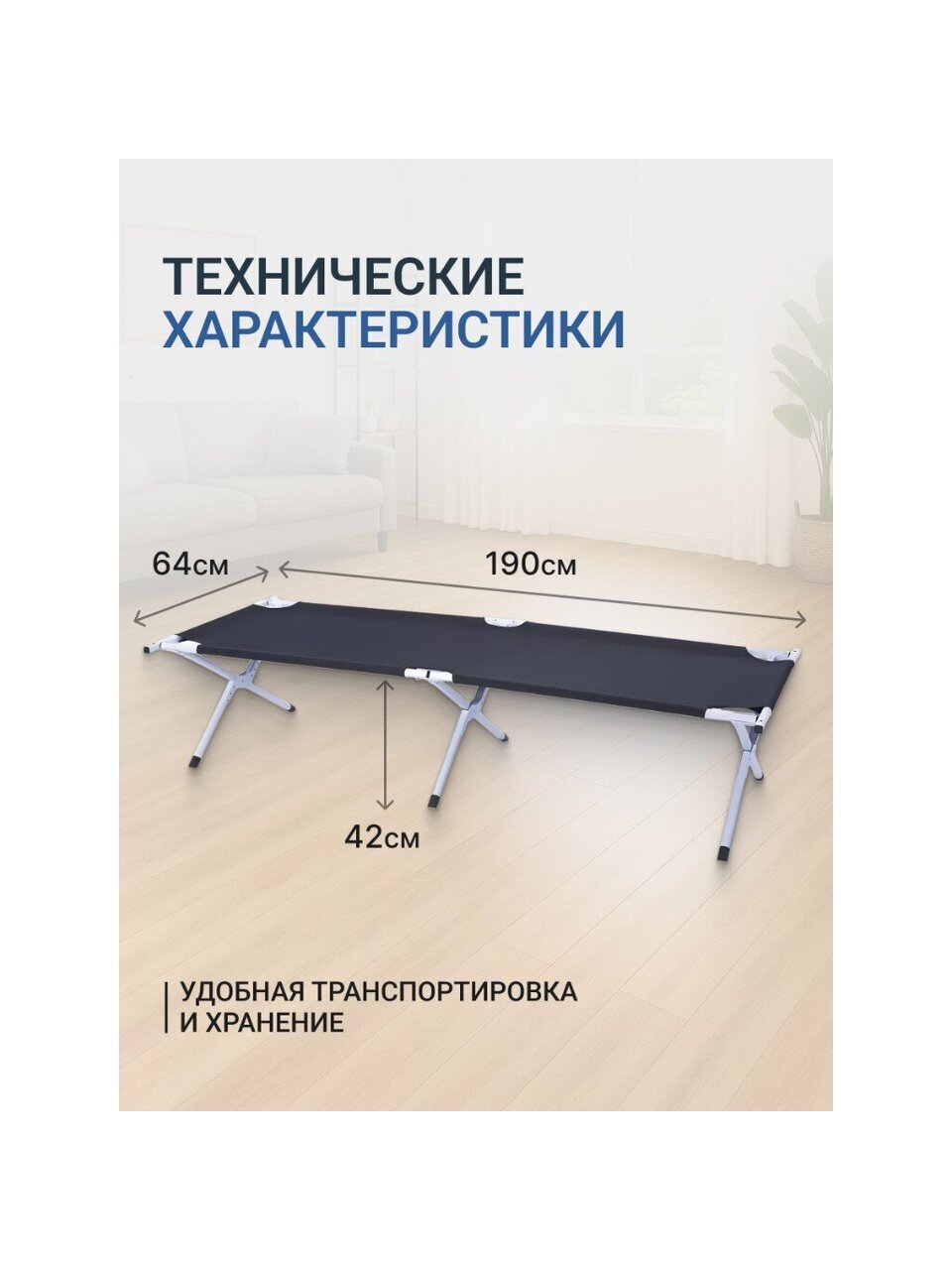 Покупка этой раскладушки — выгодное вложение в удобство и функциональность пространства. Мобильность и простота эксплуатации делают ее незаменимой для дачи, кемпинга и домашних условий.