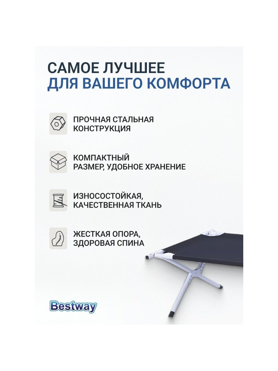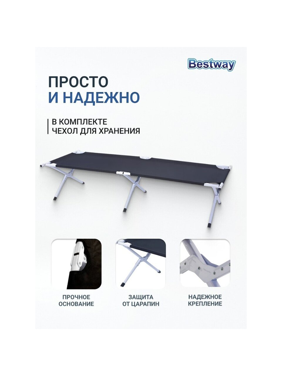 Выбирая раскладушку Bestway, клиент получает удобное, прочное и стильное решение для организации комфортного отдыха дома, на даче или в поездках, а также экономит пространство и время на подготовку дополнительного спального места.