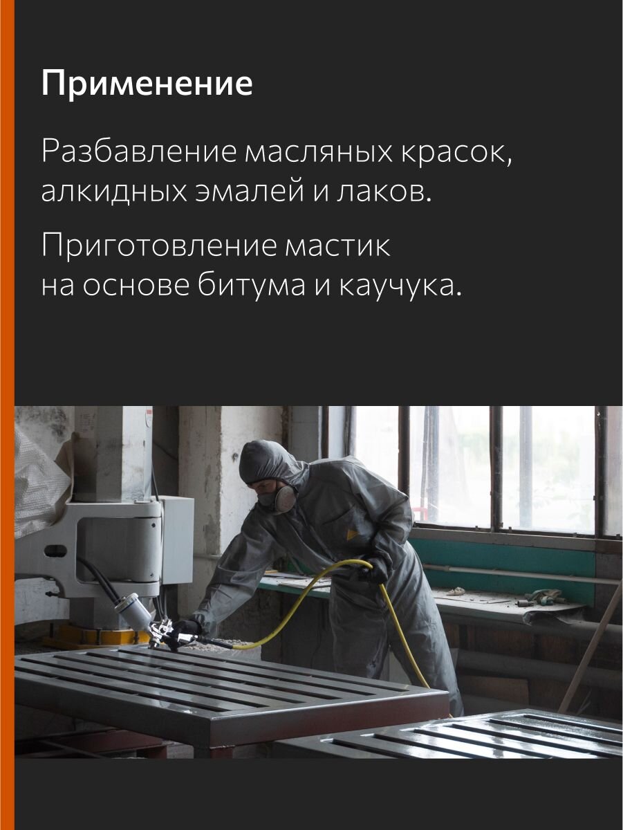 Уайт-спирит — универсальный разбавитель масляных красок, эмалей, лаков и олиф. Применяется при малярных работах в качестве добавки к различным лакам и краскам, позволяет развести их до желаемой консистенции. Добавляется небольшими порциями, тщательно размешивается. Также используется для обработки поверхностей перед нанесением декоративного покрытия: помогает удалить рыхлую старую краску и обезжирить основание. Хорошо очищает инструменты от засохших лакокрасочных материалов.