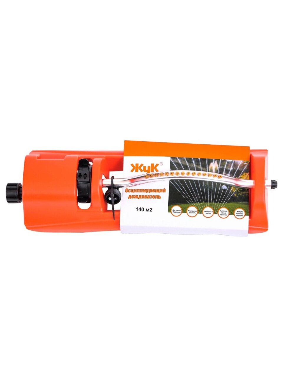 Осциллирующий дождеватель под коннектор Жук 330764-00 — современное решение для эффективного и равномерного полива газона или огорода. Идеальный выбор для владельцев приусадебных участков, которые ценят удобство, надежность и экономию времени. Благодаря маятниковой конструкции разбрызгивателя и регулировке дальности, полив осуществляется максимально точно, охватывая прямоугольную форму участка до 140 м² с радиусом до 15 метров.