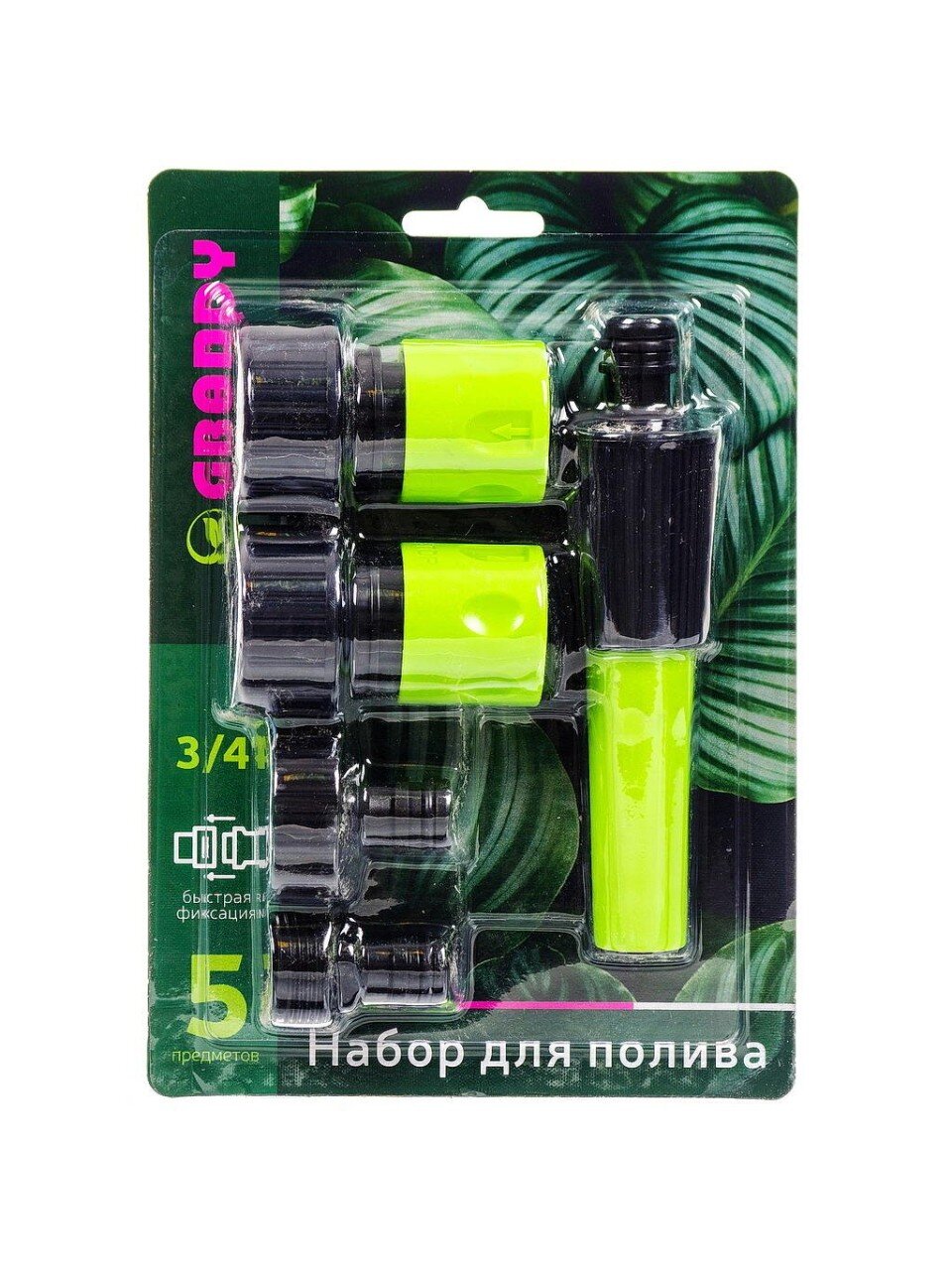 Вы можете приобрести «Набор для полива насадка поливочная, фитинги для шланга 3/4", штуцеры на кран 3/4", с внутренней и наружней резьбой, Grandy, JS-9301» и другие товары в нашем интернет-магазине в Ставрополе по низким ценам и с бесплатным самовывозом.