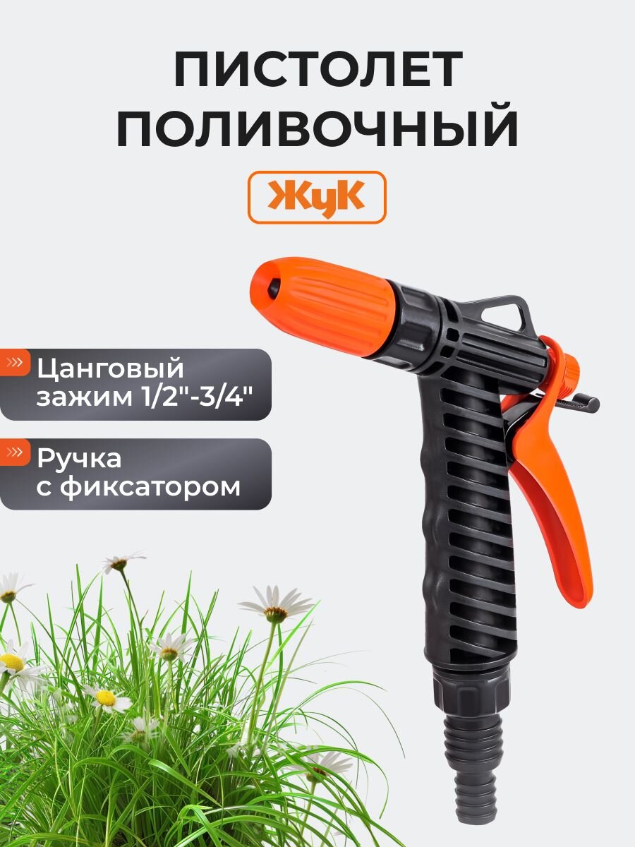 Пистолет поливочный с фиксатором Жук 3209-00 — удобное решение для эффективного полива газона и огорода. Совместимость со штуцерами 1/2" и 3/4" обеспечивает легкое подключение. Прочный пластиковый корпус и возможность регулировки режима полива делают уход за участком простым и комфортным. Идеальный выбор для поддержания зелени и урожая в отличном состоянии.