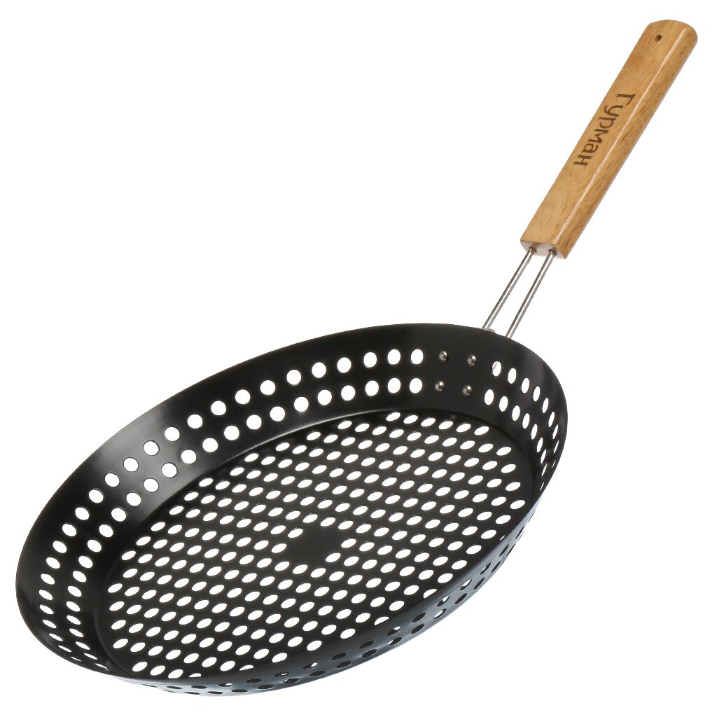 Решетка позволяет быстро и равномерно прожарить мясо, рыбу или овощи, не допуская пригорания. Деревянная ручка защищает от ожогов, а оптимальный размер подходит для компании из 3-5 человек.