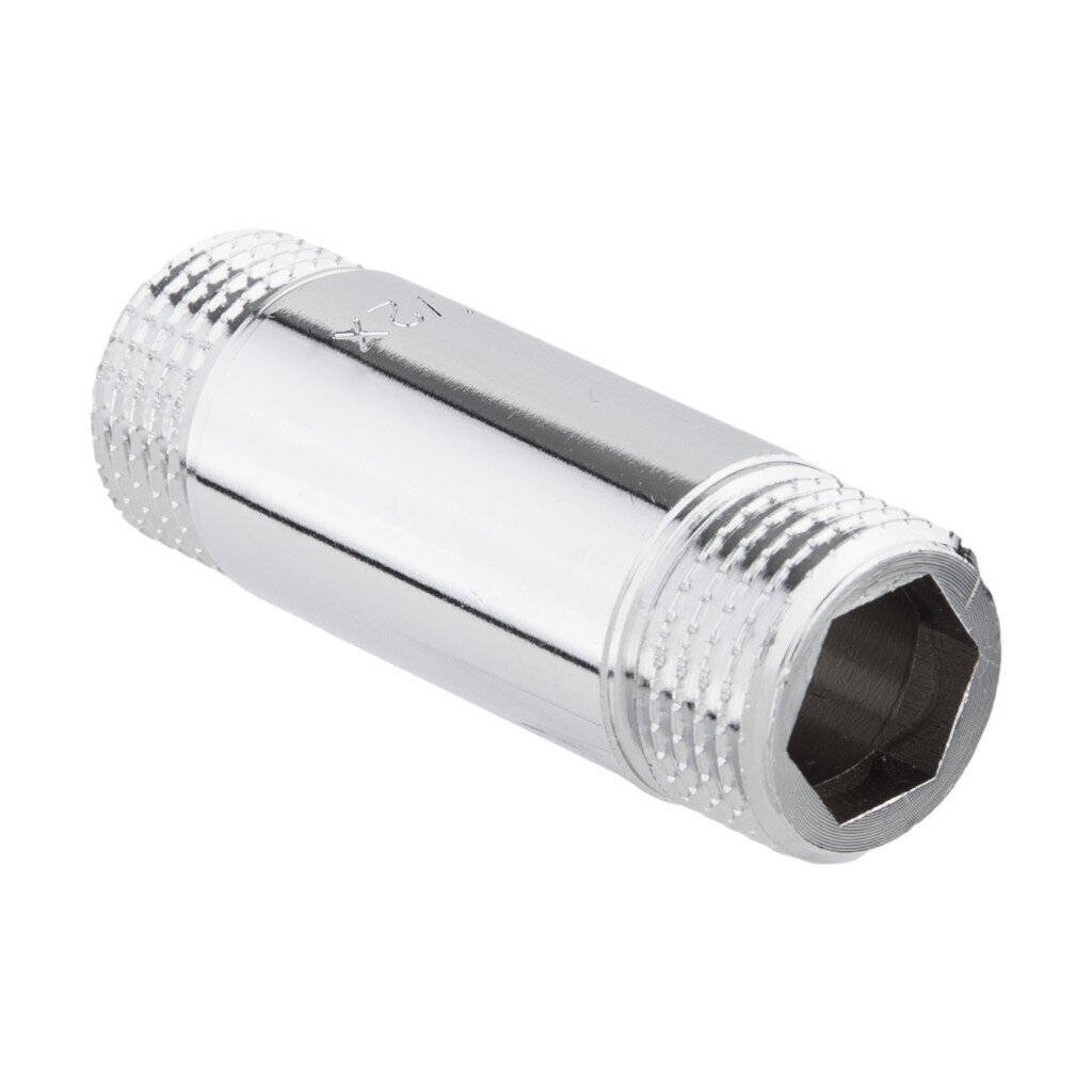 Длина — 70 мм, тип соединения — ш-ш (наружная резьба с обеих сторон), материал — латунь с хромированием, бренд — AquaLink, артикул — 02473.