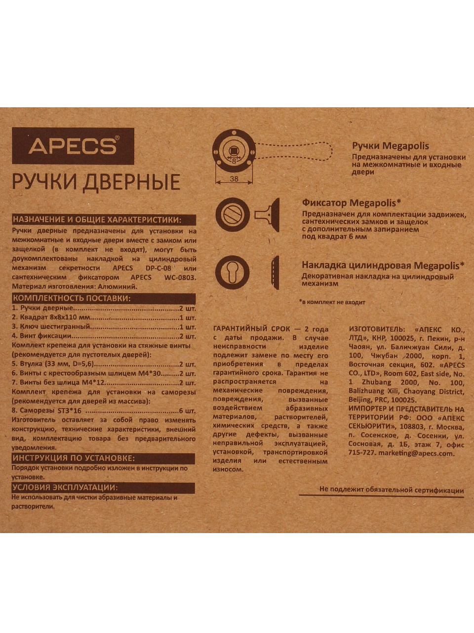 Вы можете приобрести «Ручка дверная Apecs, Megapolis Seoul H-0826-A-NIS\NI, 00022698, матовый никель, никель, алюминий» и другие товары в нашем интернет-магазине в Астрахани по низким ценам и с бесплатным самовывозом.