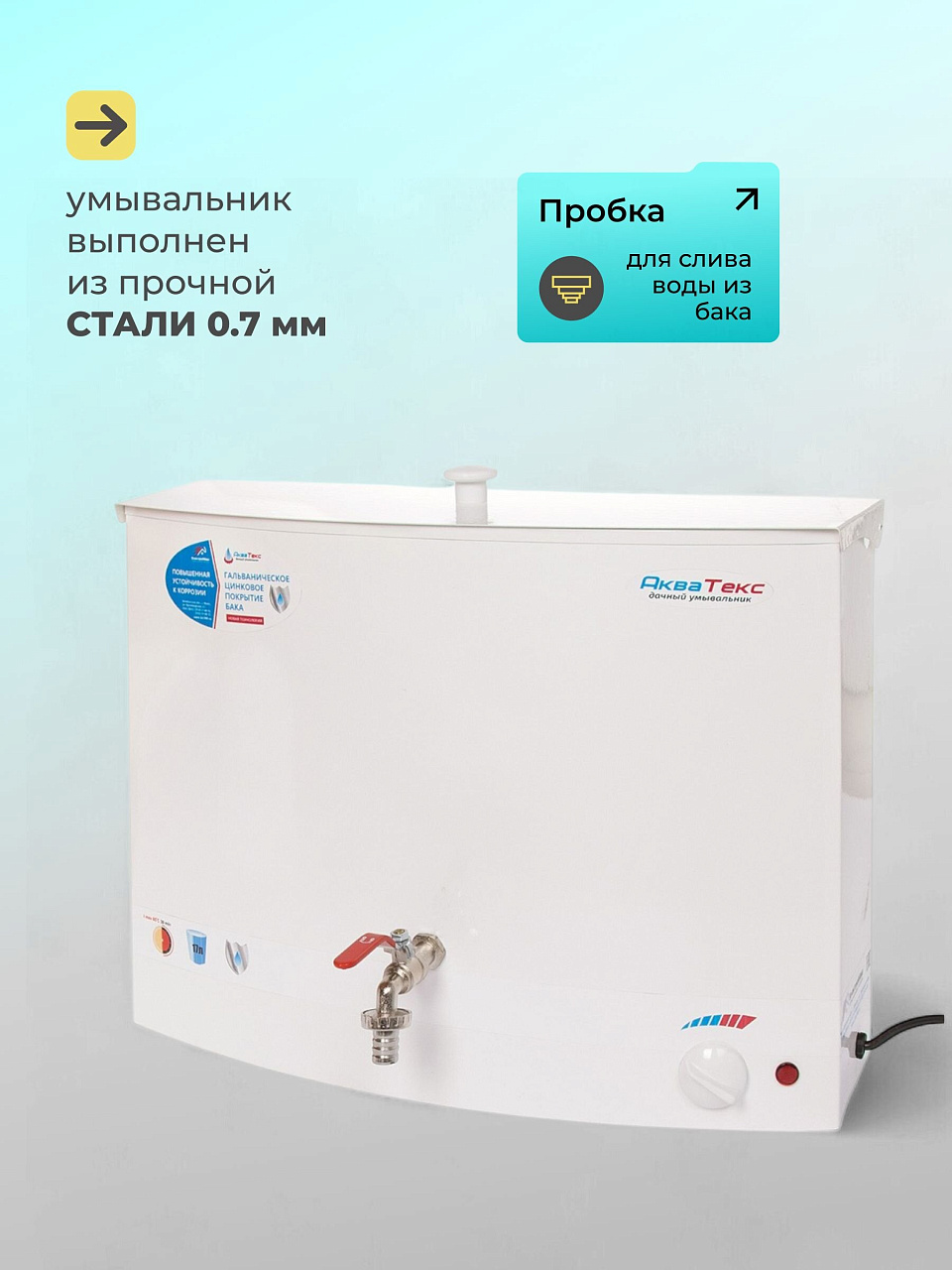 Наслаждайтесь комфортными условиями даже вдали от цивилизации. Настенный бак «Акватекс» станет для вас лучшим помощником на даче, в гараже или других местах, где нет центрального водоснабжения. Данная модель впишется в любой интерьер благодаря лаконичному дизайну. Нагрев воды происходит за счёт встроенного трубчатого нагревателя из нержавеющей стали. Вы можете быть уверены в безопасности: прибор оснащён датчиком аварийного отключения ТЭНа. Устанавливайте желаемую температуру воды с помощью специального регулятора.