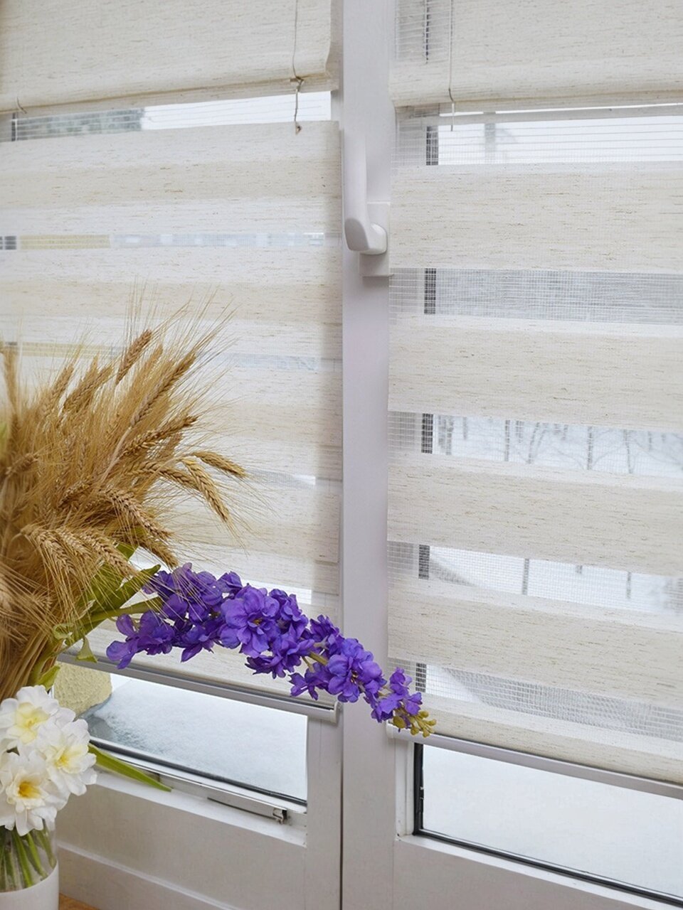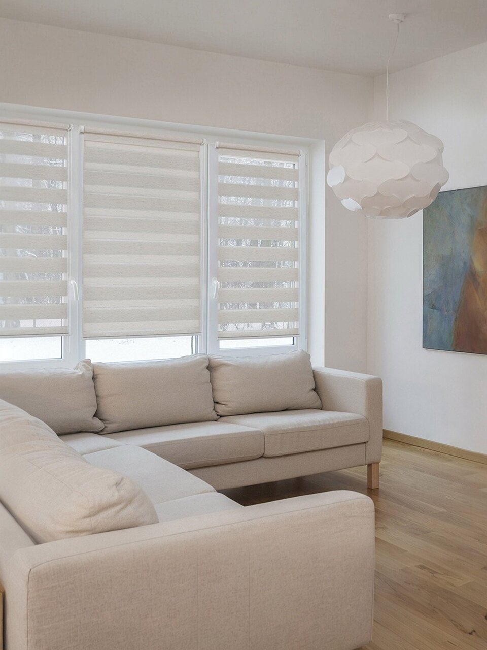 Рулонная штора "День-Ночь" - это отличное решение в оформлении окна. Рулонная штора состоит из ткани, с чередующимися полосами из прозрачного и непрозрачного материала, расположенной в два слоя. Уникальность двойной рулонной шторы заключается в её универсальности. Она имеет и привлекательный внешний вид, и легка в управлении, и, кроме того, даёт возможность контролировать интенсивность солнечного света, непосредственно на самом изделии.