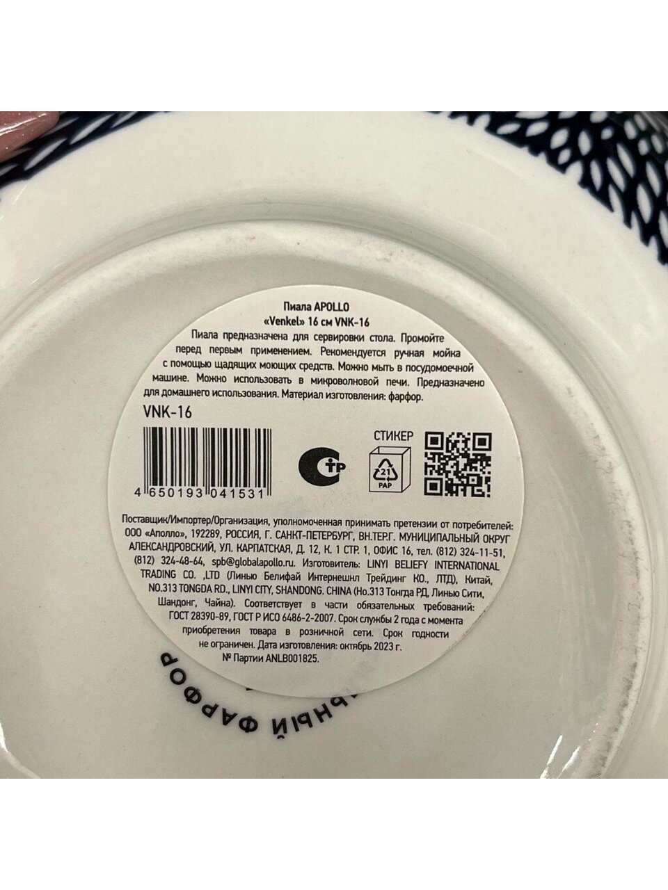 Фарфор не впитывает запахи и легко очищается, а абстрактный рисунок устойчив к выцветанию. Размер 16х7,6 см универсален для разных блюд и сценариев использования.