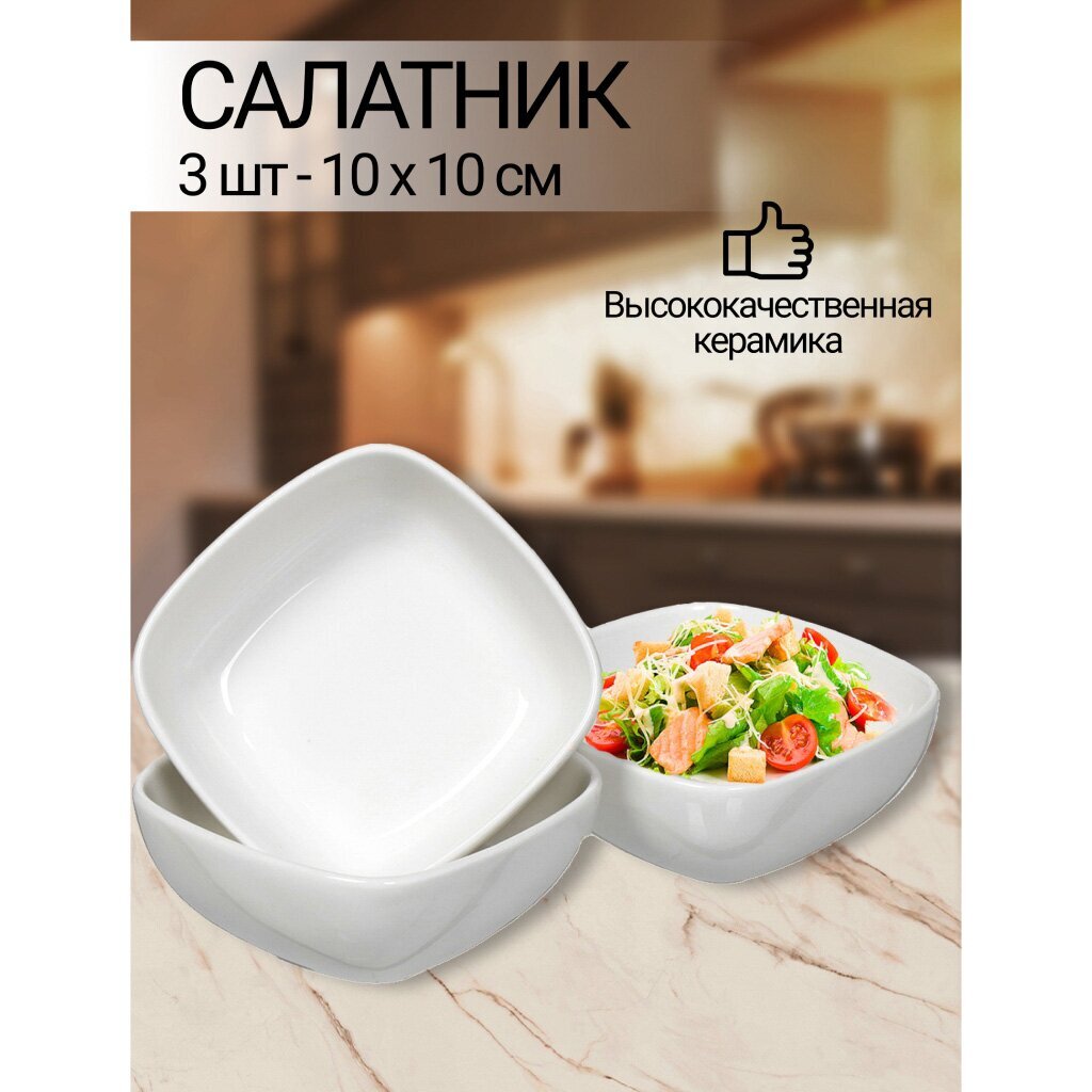 Салатники керамические квадратные 10х5 см, набор 3 шт — стиль и универсальность для сервировки стола дома и на даче по выгодной цене