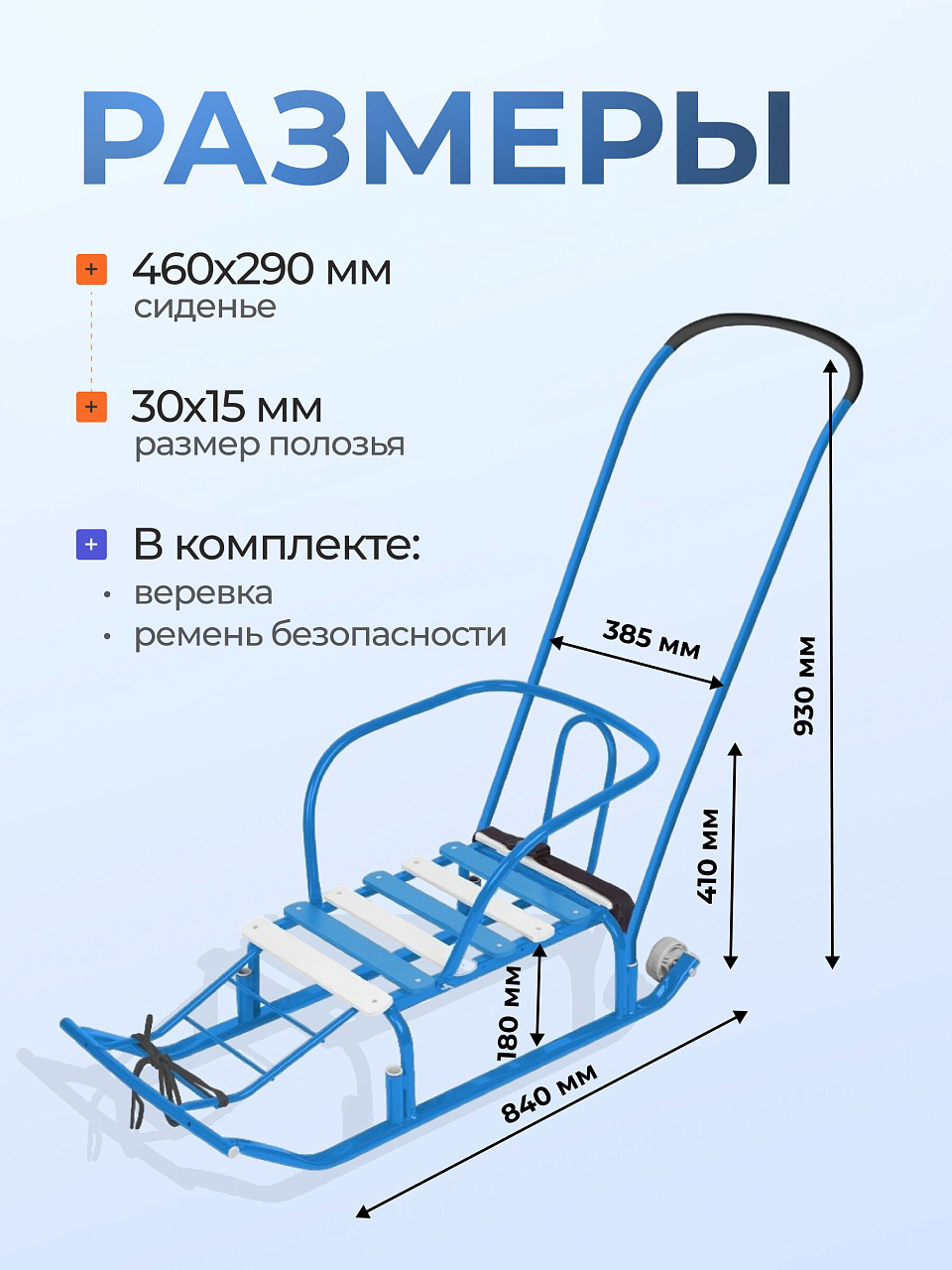 - Комплектация: спинка, ручка, ремень безопасности, колеса, верёвка.