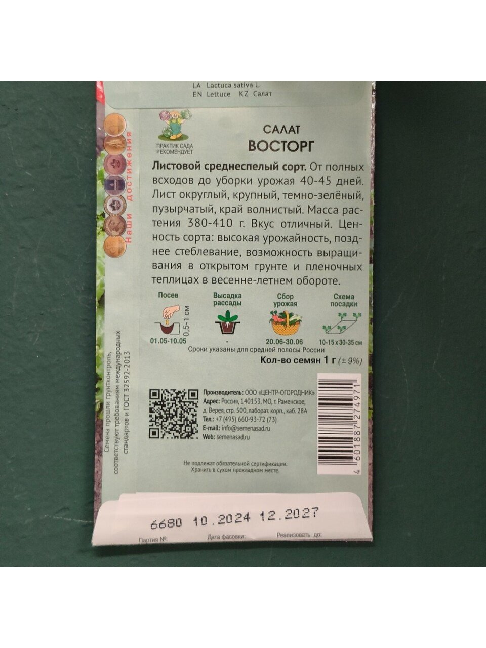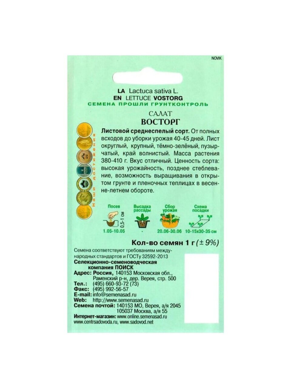 Вы можете приобрести «Семена Салат листовой, Восторг, 1 г, цветная упаковка, Поиск» и другие товары в нашем интернет-магазине в Тамбове по низким ценам и с бесплатным самовывозом.