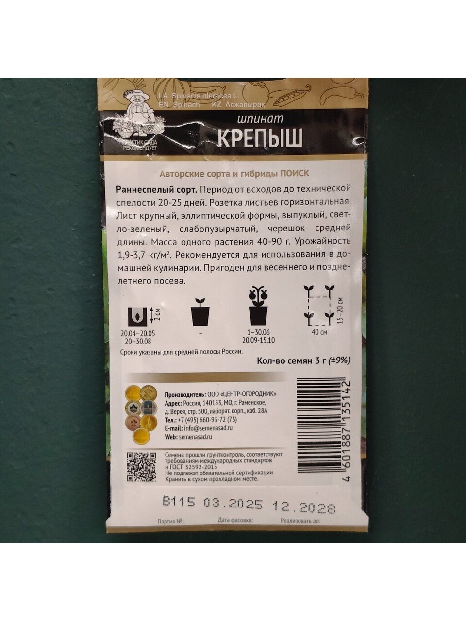 Вы можете приобрести «Семена Шпинат, Крепыш, 3 г, цветная упаковка, Поиск» и другие товары в нашем интернет-магазине в Тамбове по низким ценам и с бесплатным самовывозом.