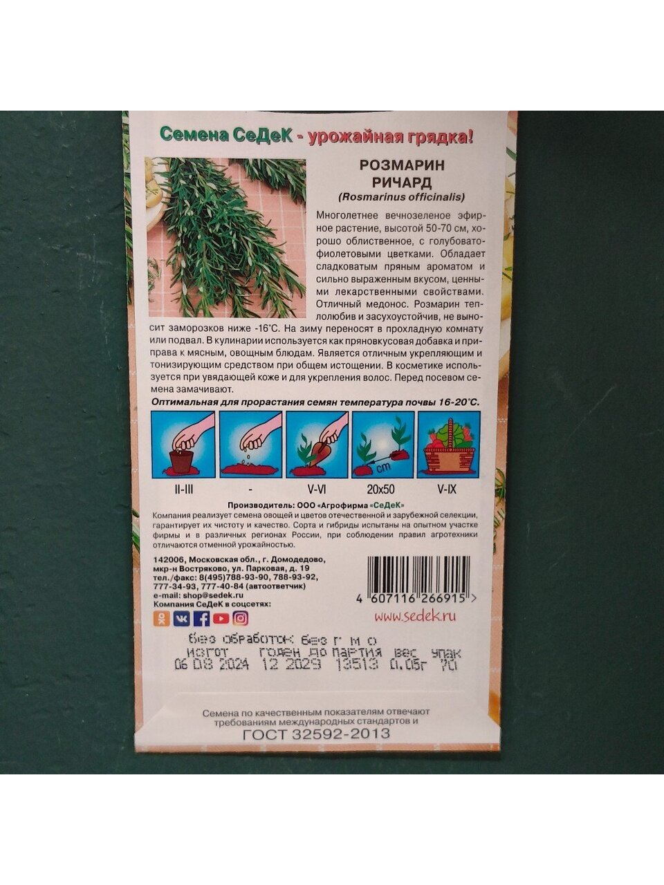 Вы можете приобрести «Семена Розмарин, Ричард, цветная упаковка, Седек» и другие товары в нашем интернет-магазине в Краснодаре по низким ценам и с бесплатным самовывозом.