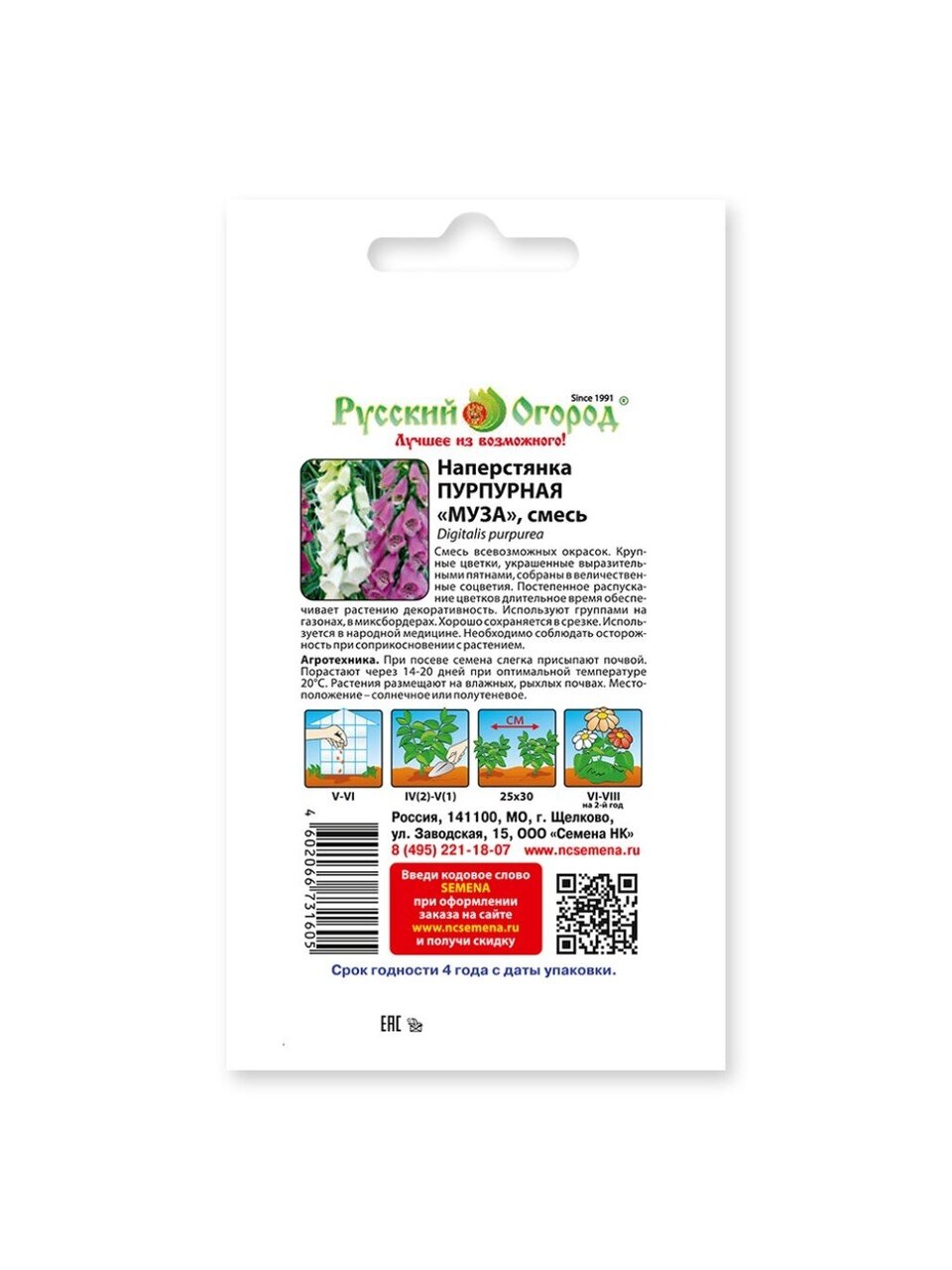 Вы можете приобрести «Семена Цветы, Наперстянка, Пурпурная Муза, 0.1 г, цветная упаковка, Русский огород» и другие товары в нашем интернет-магазине в Орле по низким ценам и с бесплатным самовывозом.