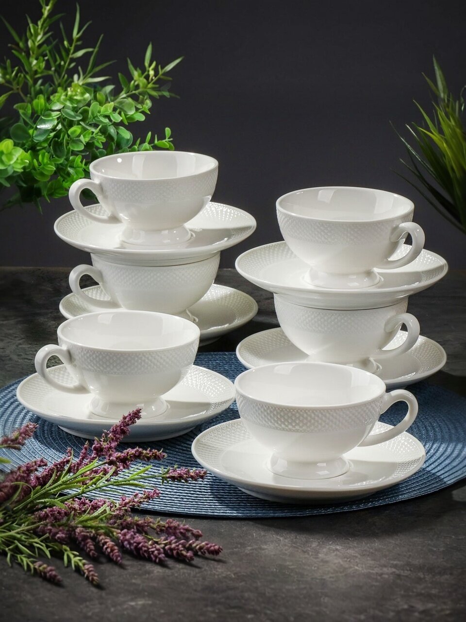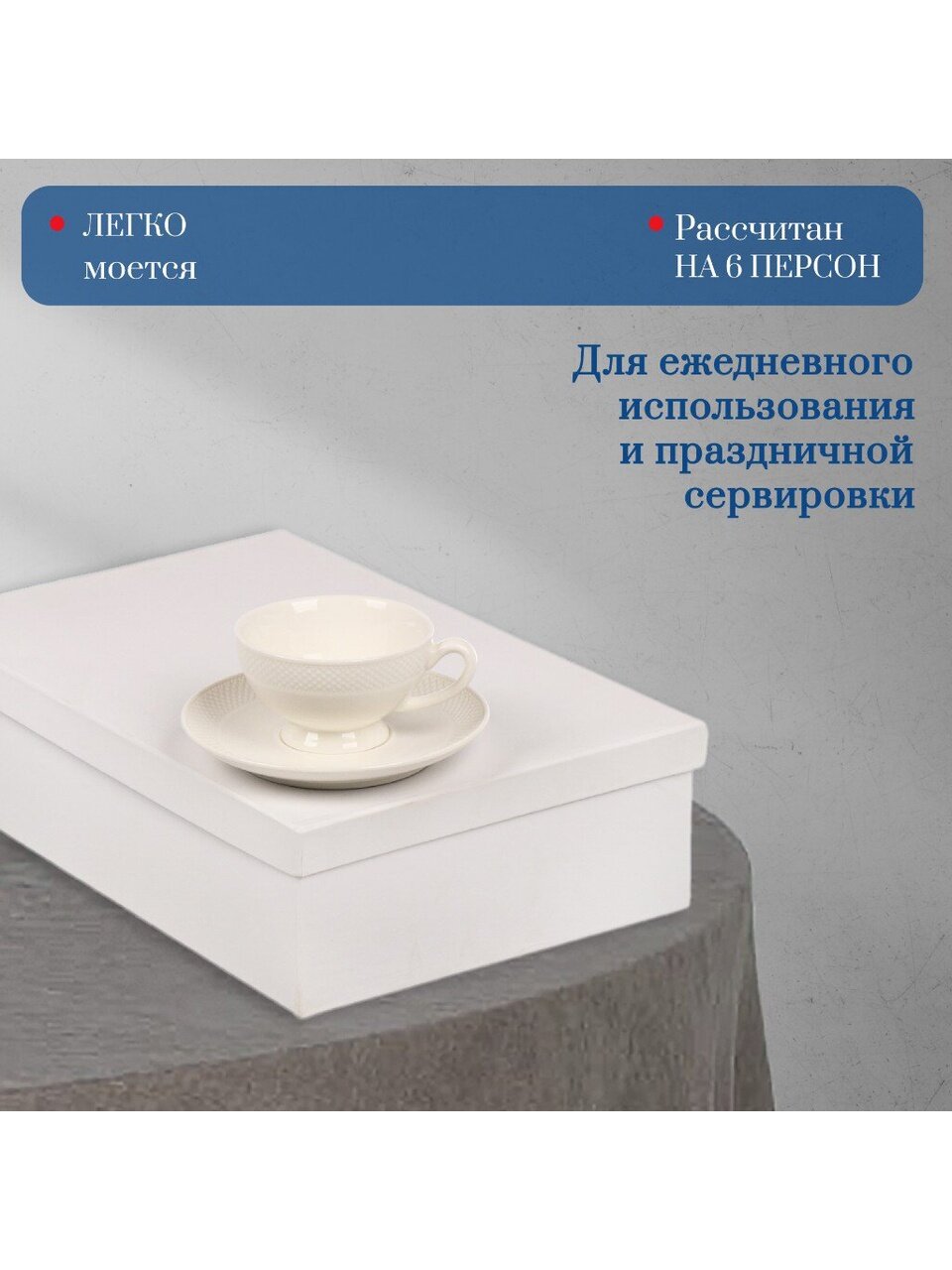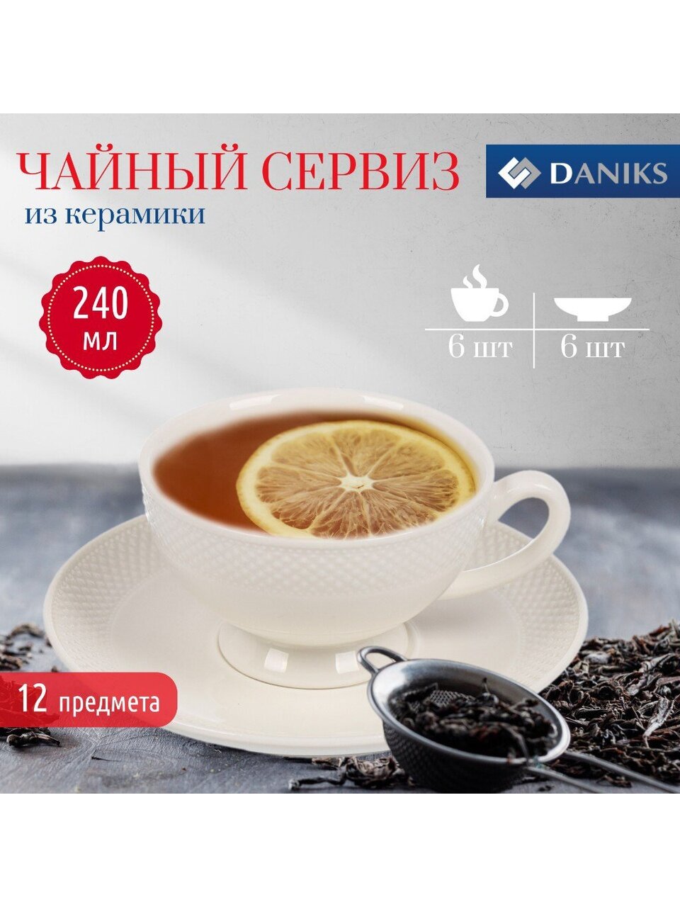 Набор чайный Daniks «Сеть» на 6 персон — подарочная упаковка, керамика, 12 предметов, подходит для посудомоечной машины и СВЧ. Идеальный подарок и уют для дома.
