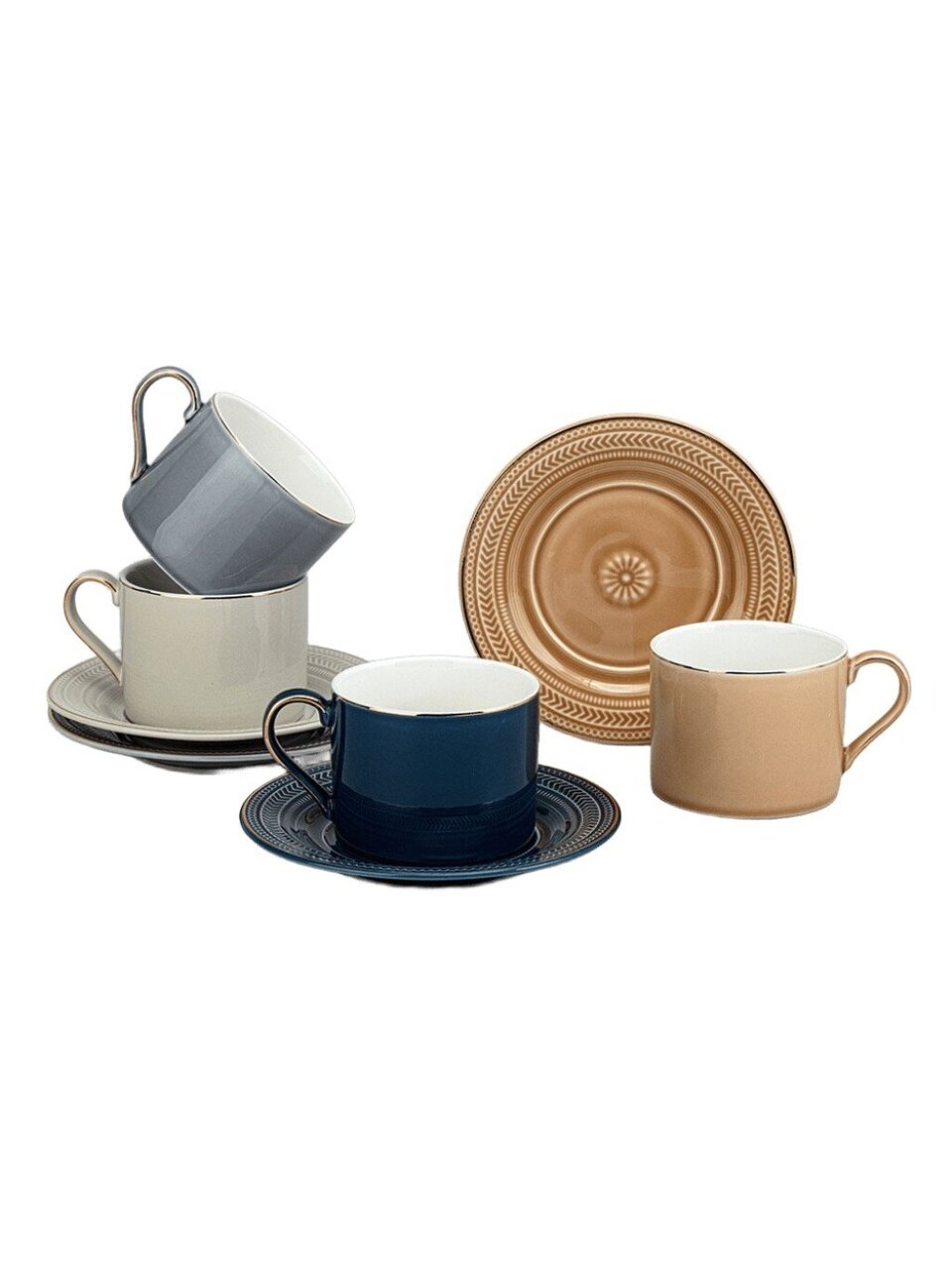 - Эксклюзивный дизайн: разноцветные чашки с золотой каймой — современный стиль для вашего стола
