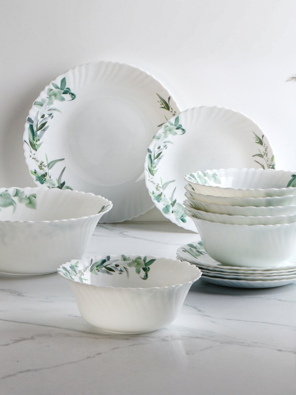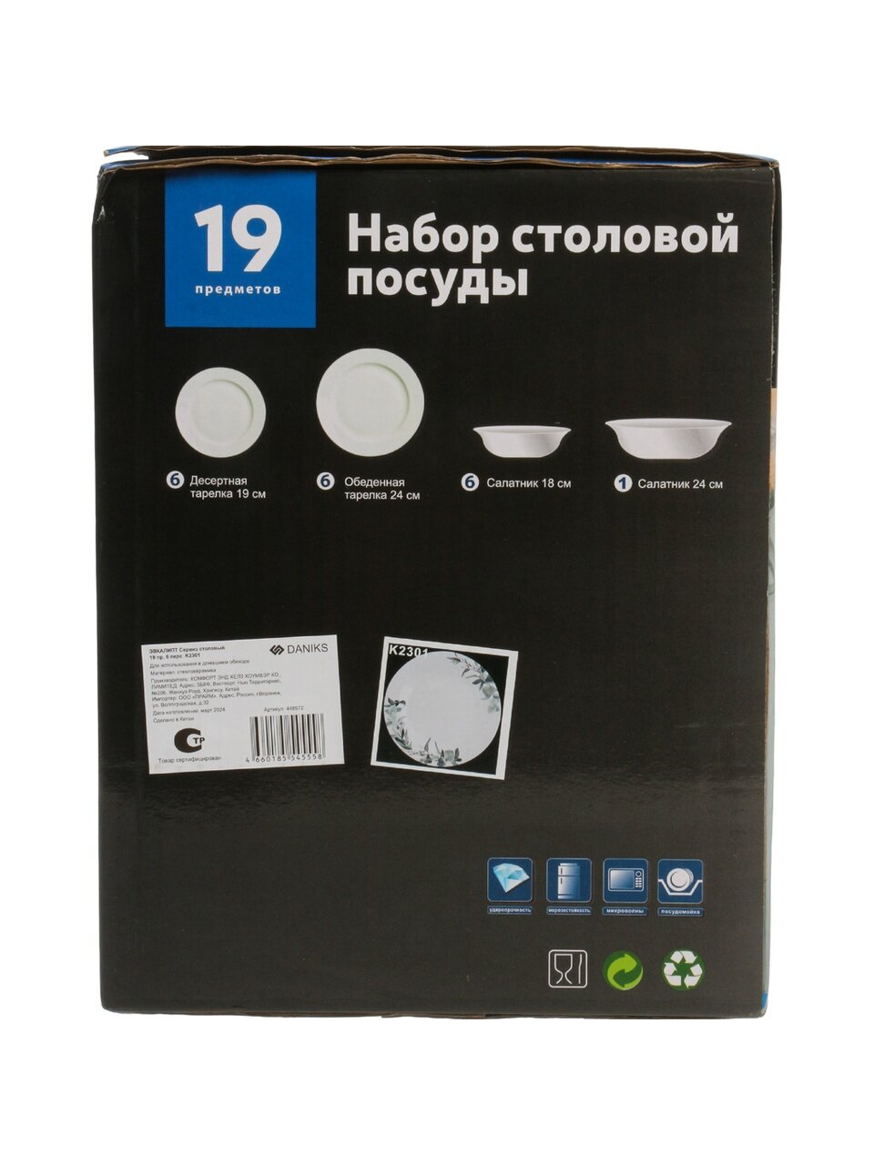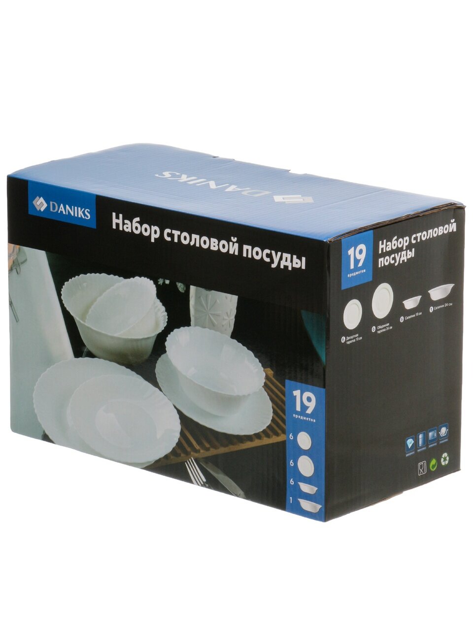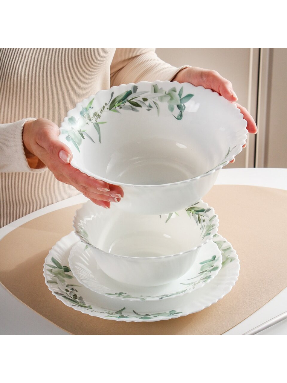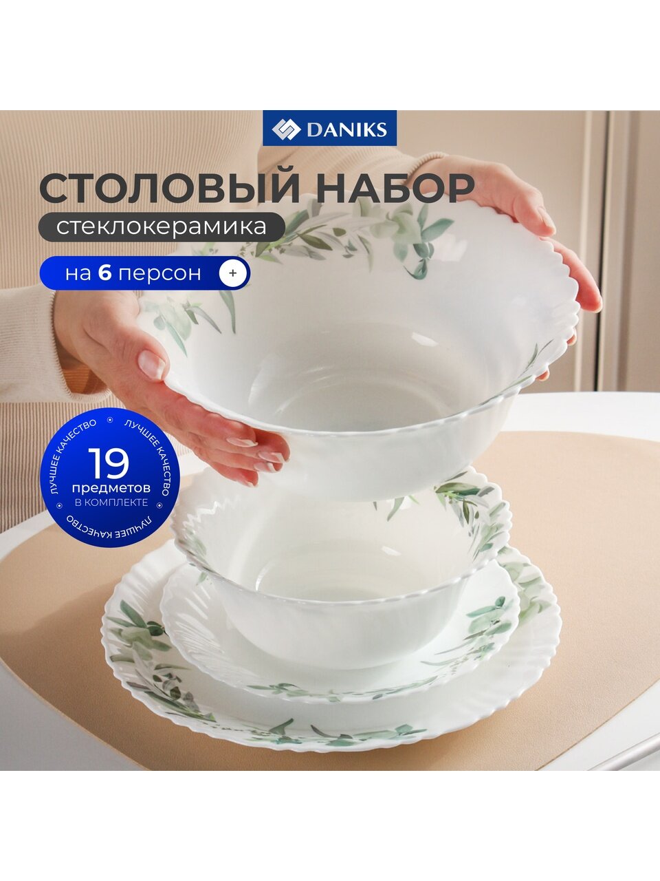 Столовый сервиз Daniks «Эвкалипт» на 6 персон: 19 предметов из ударопрочной стеклокерамики для сервировки дома, дачи и стильного подарка.