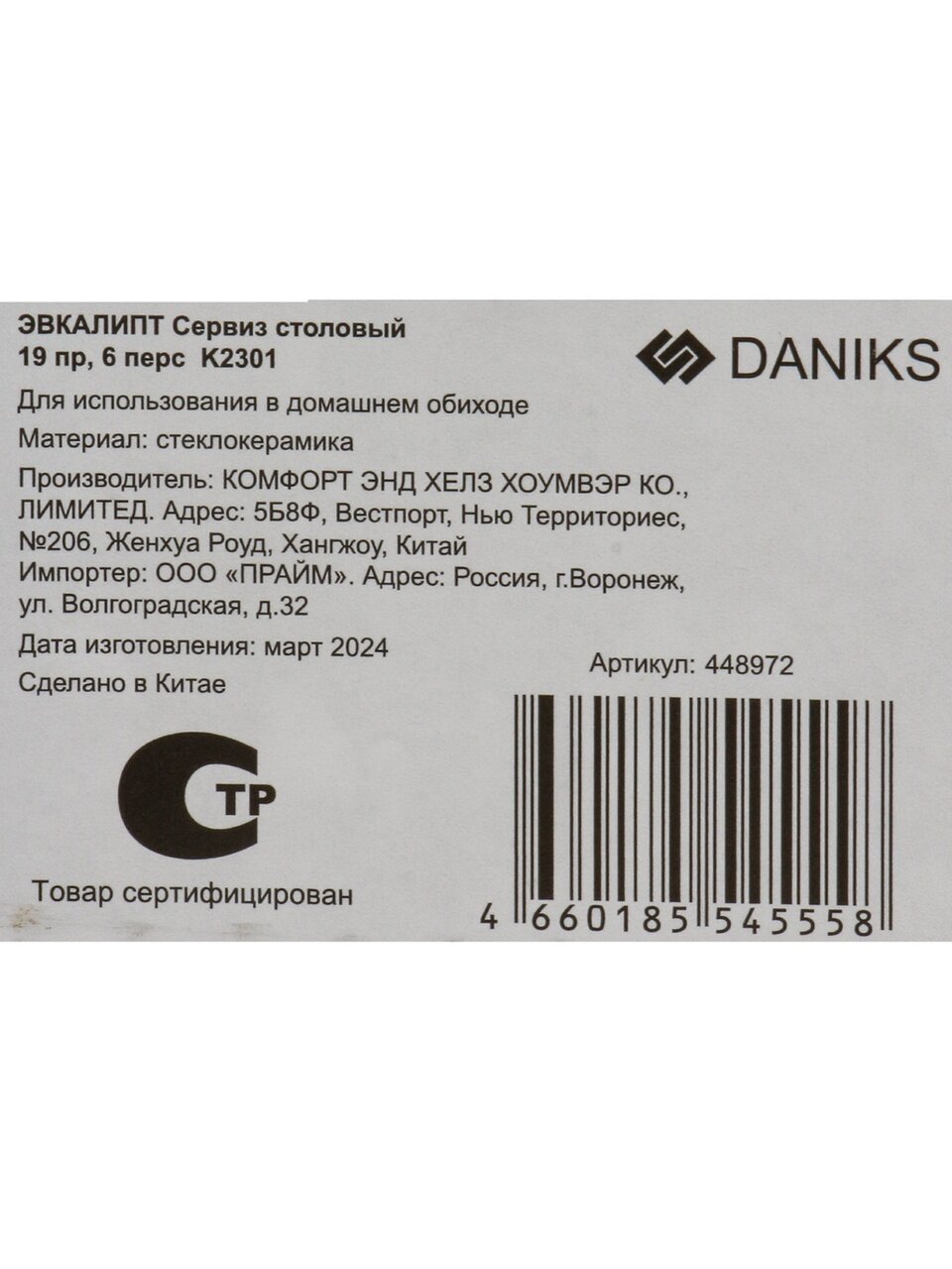 Оформите заказ на сервиз столовый из стеклокерамики Daniks «Эвкалипт» — получите стильную и практичную посуду с быстрой доставкой и гарантией качества от официального поставщика.