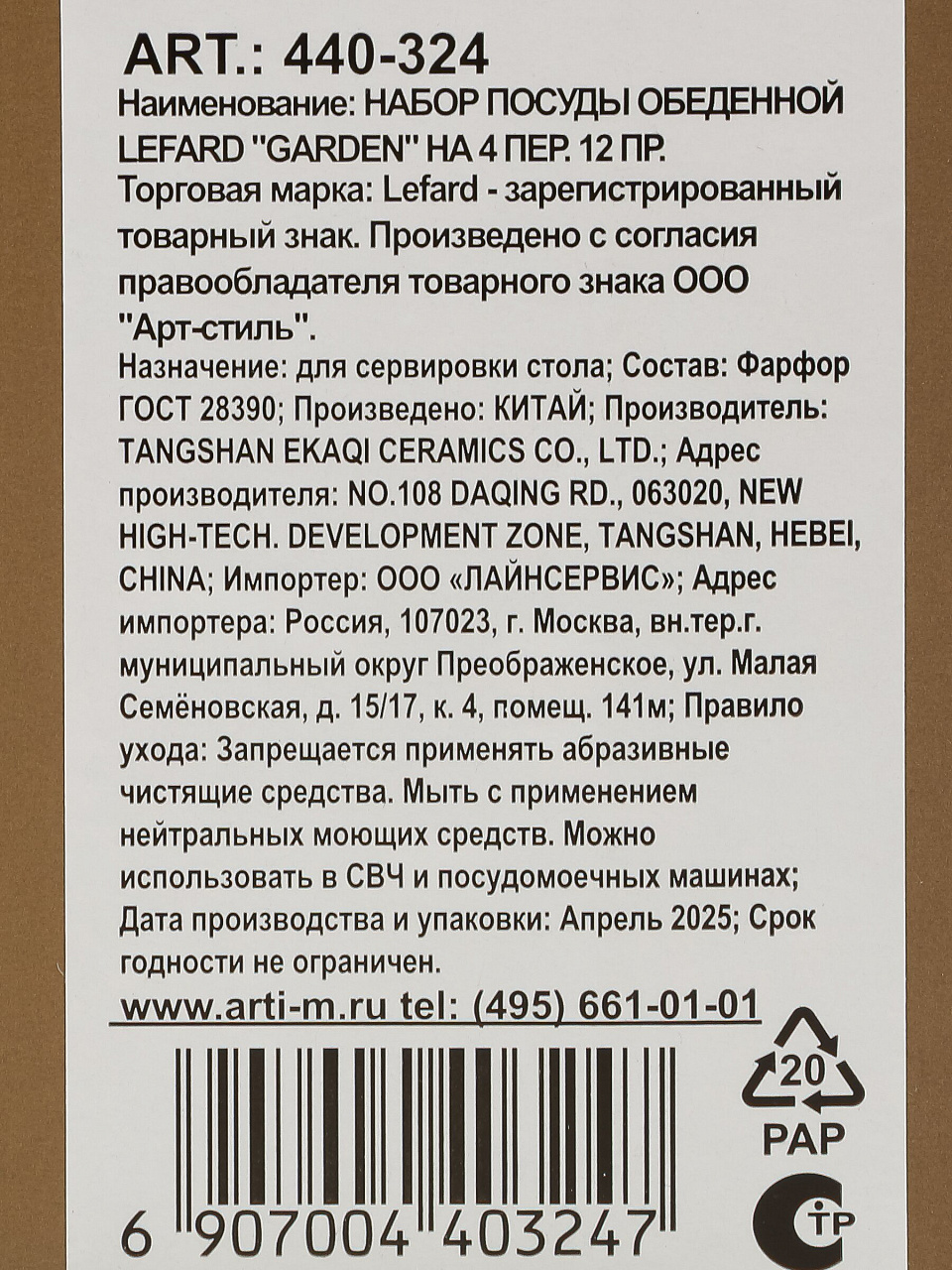 Сервиз столовый фарфор Lefard GARDEN 12 предметов: стиль для 4 персон, идеален для подарка и уютных семейных ужинов.