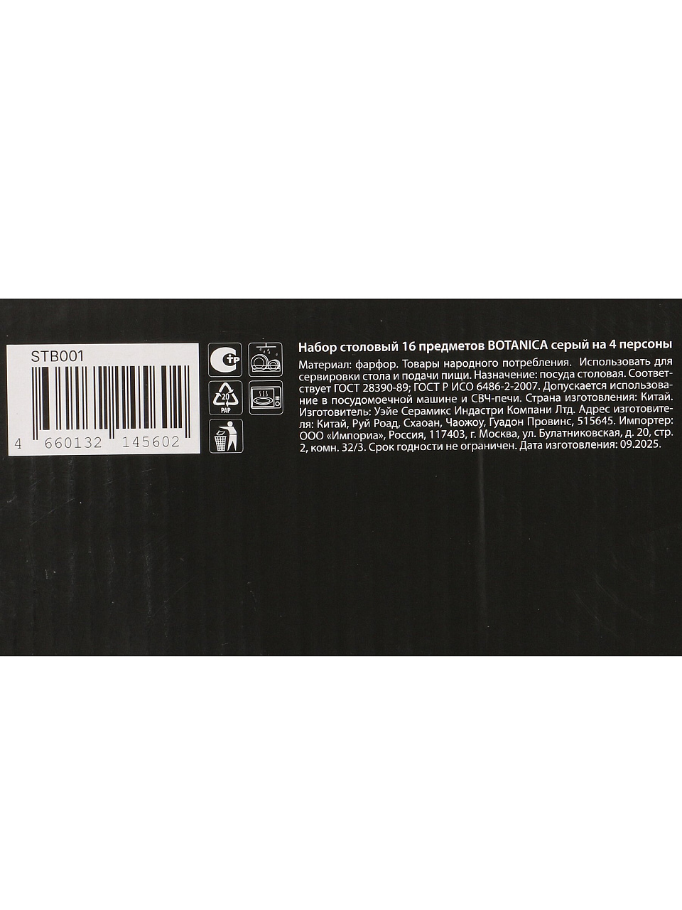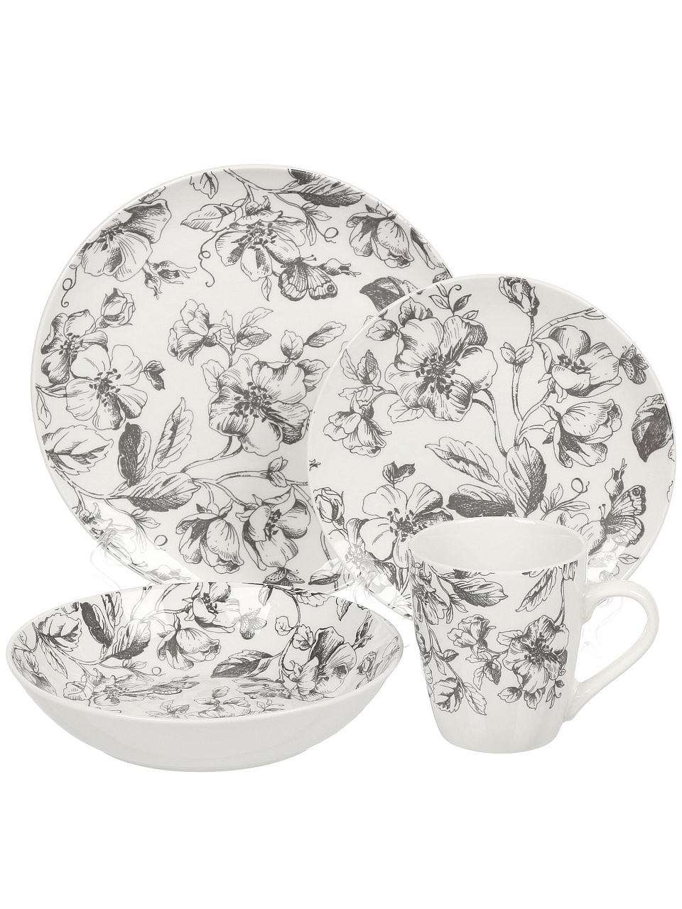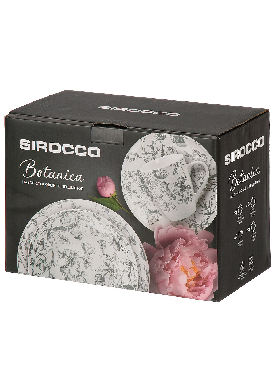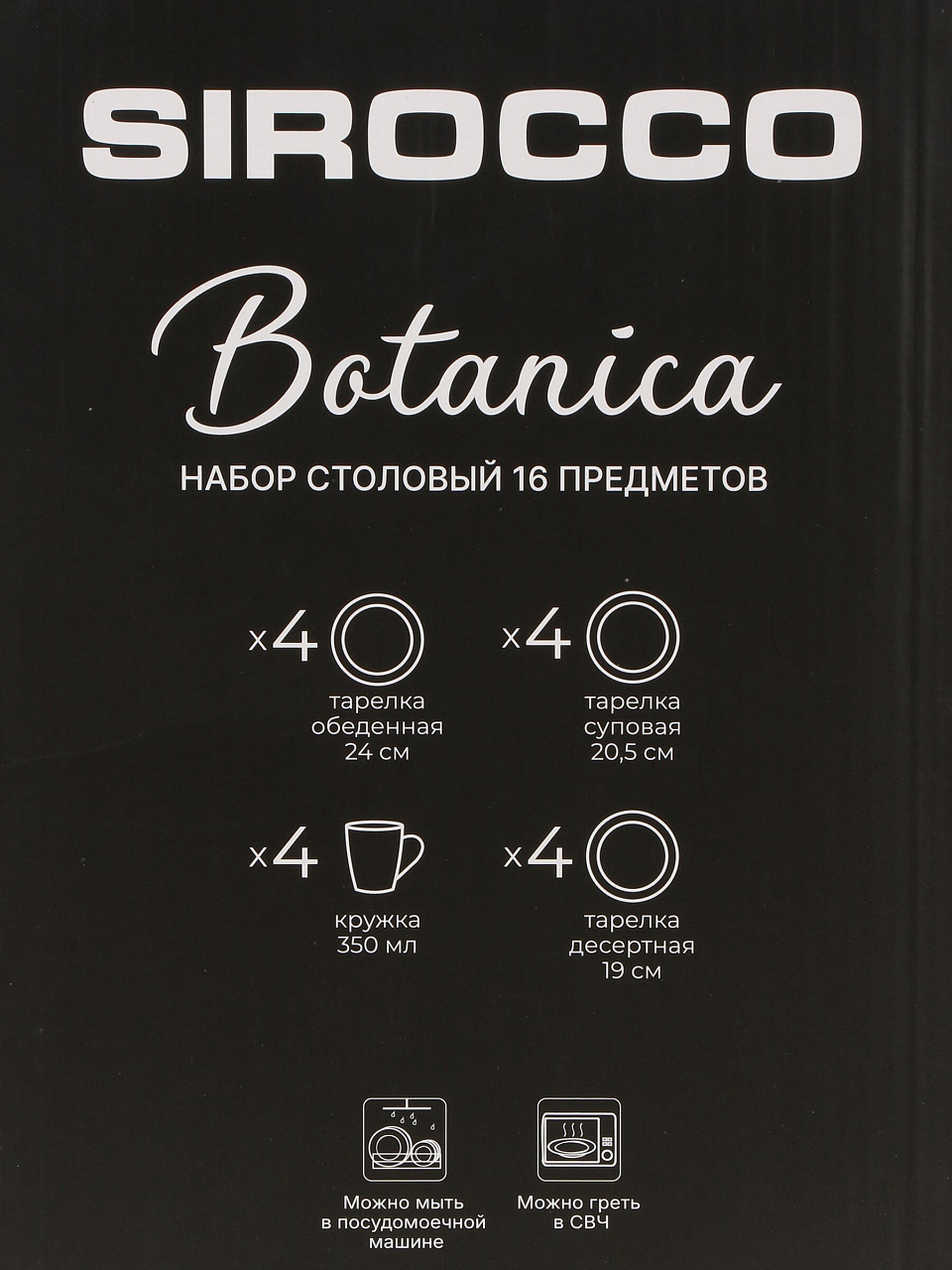 Сервиз столовый фарфор, 16 предметов, на 4 персоны, Sirocco, Botanica, STB001