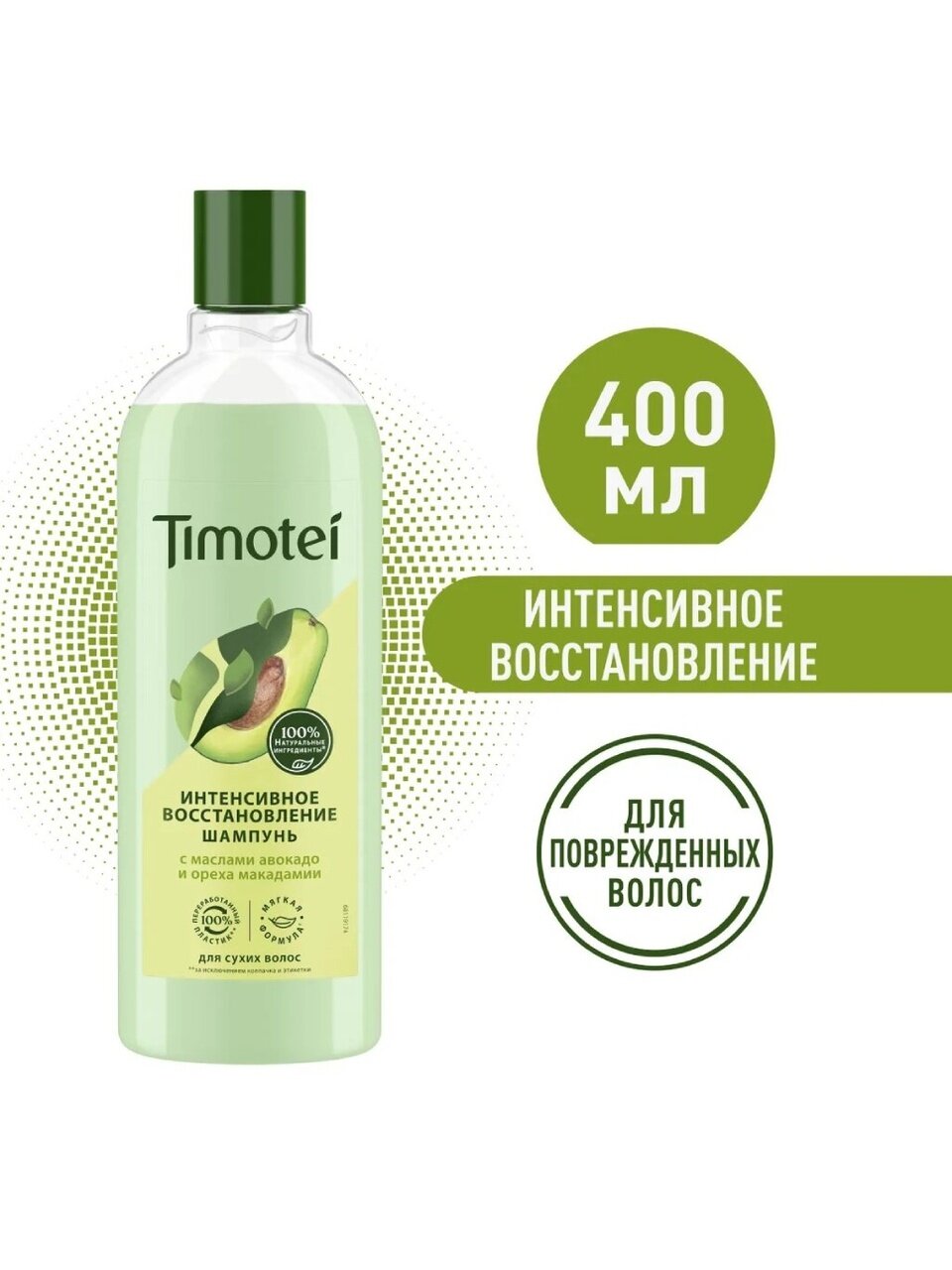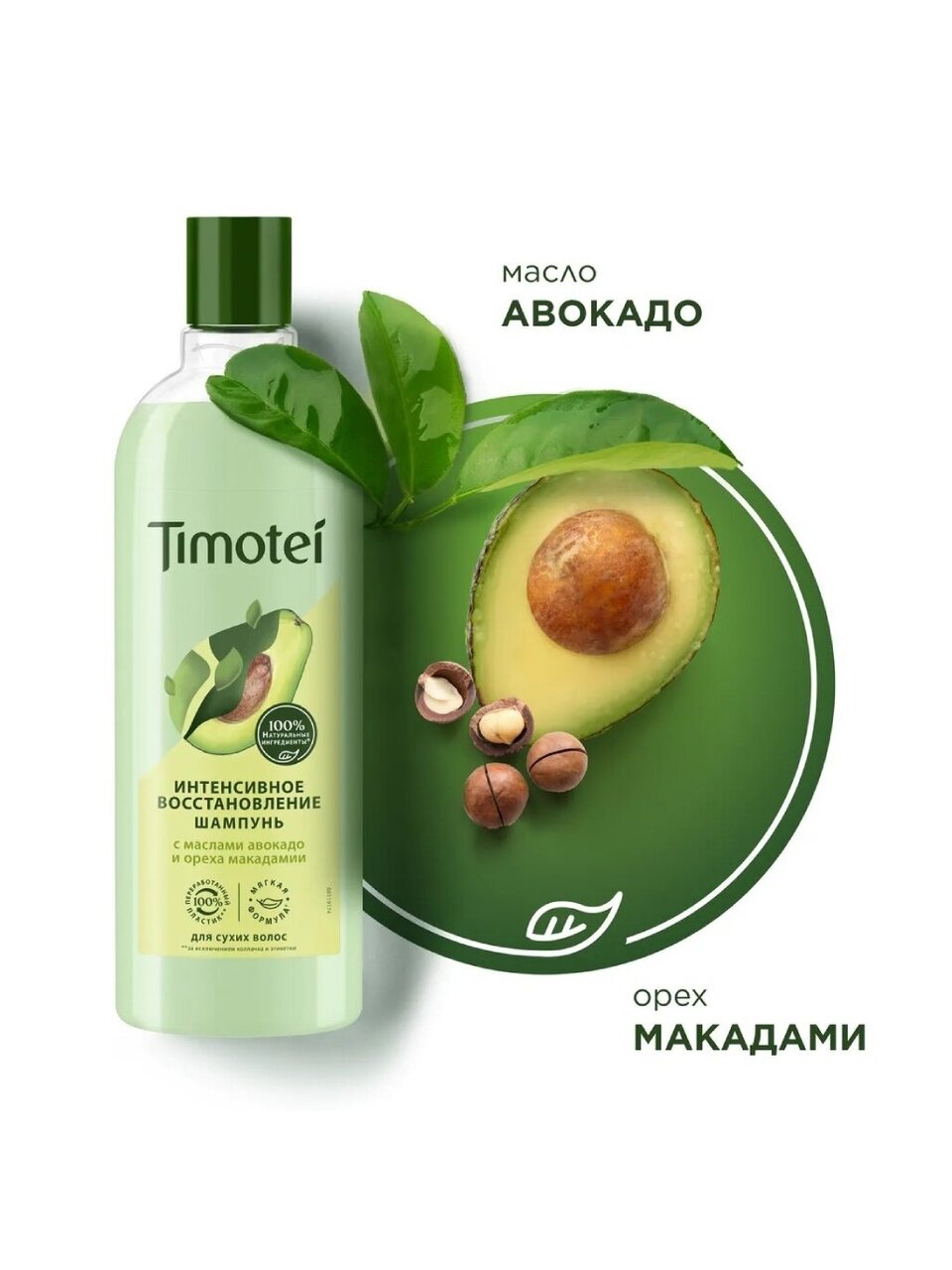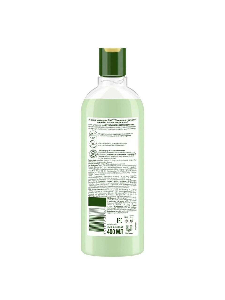 Шампунь Timotei Интенсивное восстановление с авокадо качественно питает поврежденные, а также сухие волосы. Он день за днем возвращает жизненную силу и придает здоровый вид вашим локонам! Специалисты бренда Timotei разработали новую улучшенную формулу, благодаря которой шампунь:
