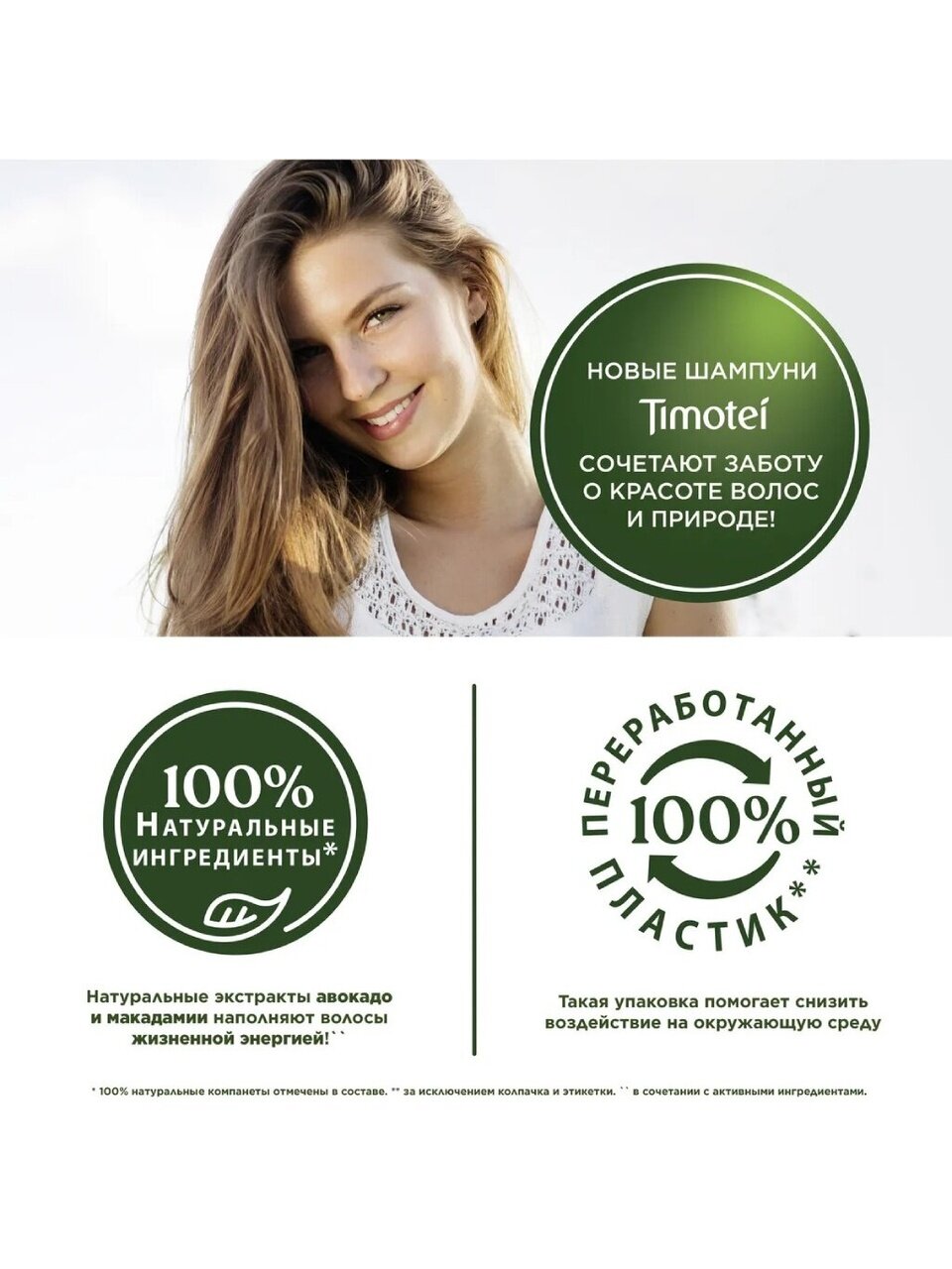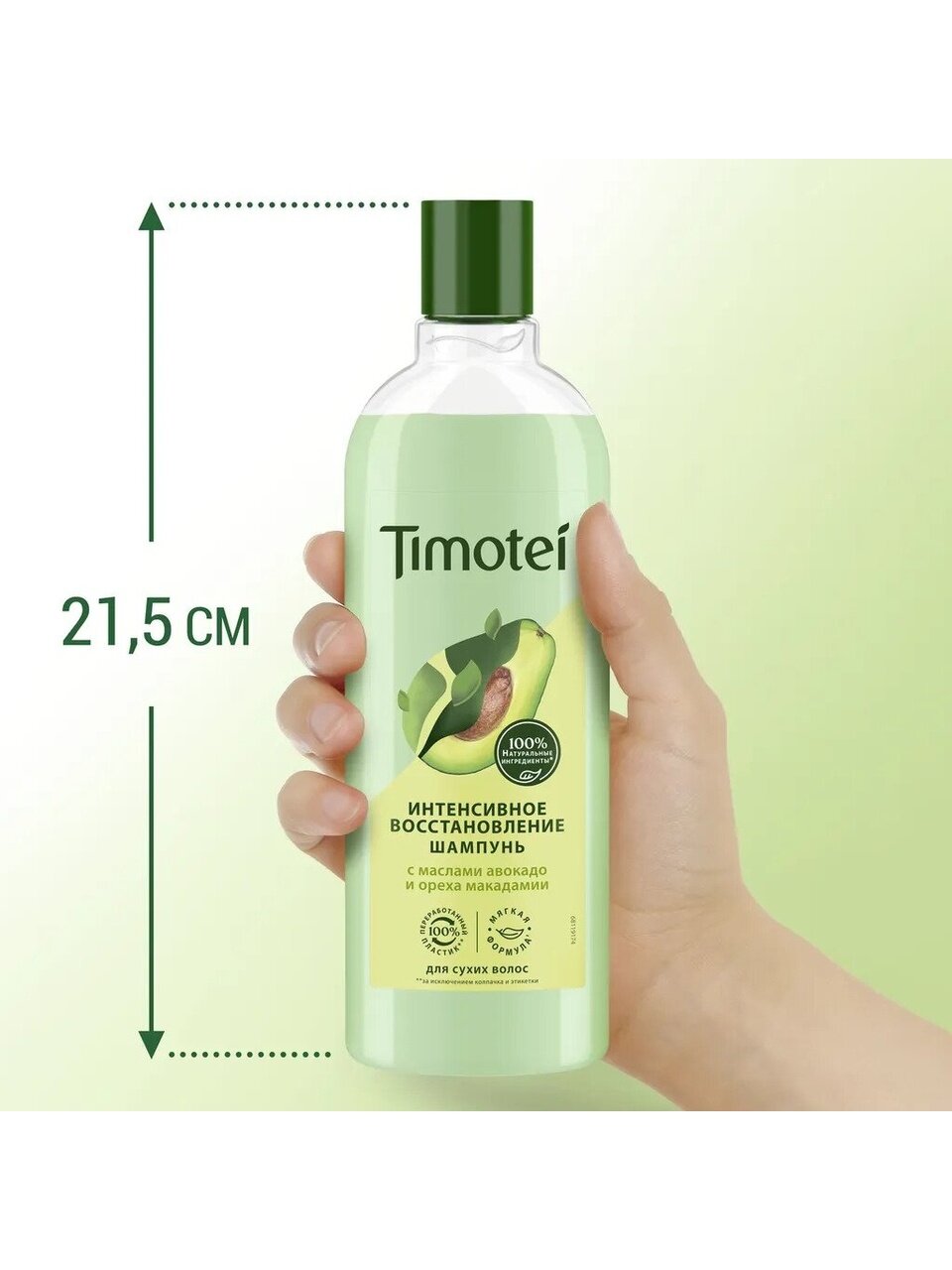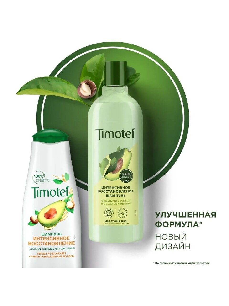 Шампунь Timotei Интенсивное восстановление с авокадо качественно питает поврежденные, а также сухие волосы. Он день за днем возвращает жизненную силу и придает здоровый вид вашим локонам! Специалисты бренда Timotei разработали новую улучшенную формулу, благодаря которой шампунь: