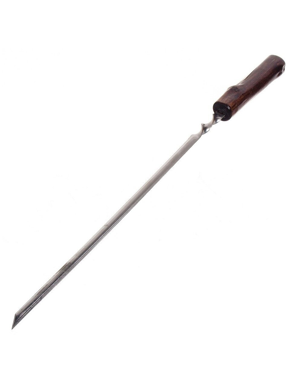 Металлический шампур отличается прочностью, долговечностью и удобством пользования. Заостренный конец идеально нанизывает даже большие и жесткие куски мяса. Благодаря угловой конструкции, мясо не соскальзывает во время приготовления и равномерно обжаривается со всех сторон.
