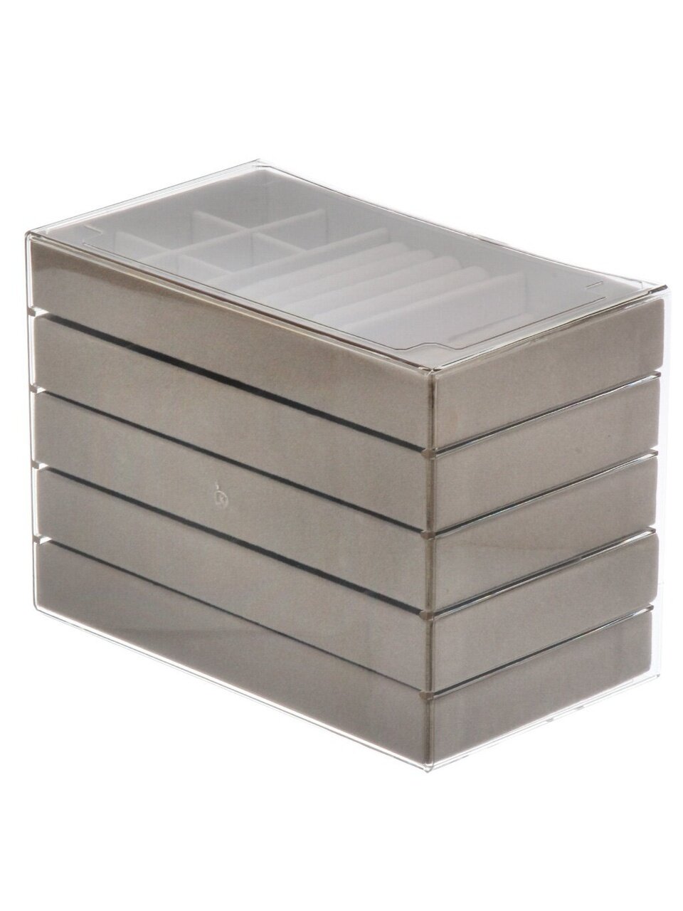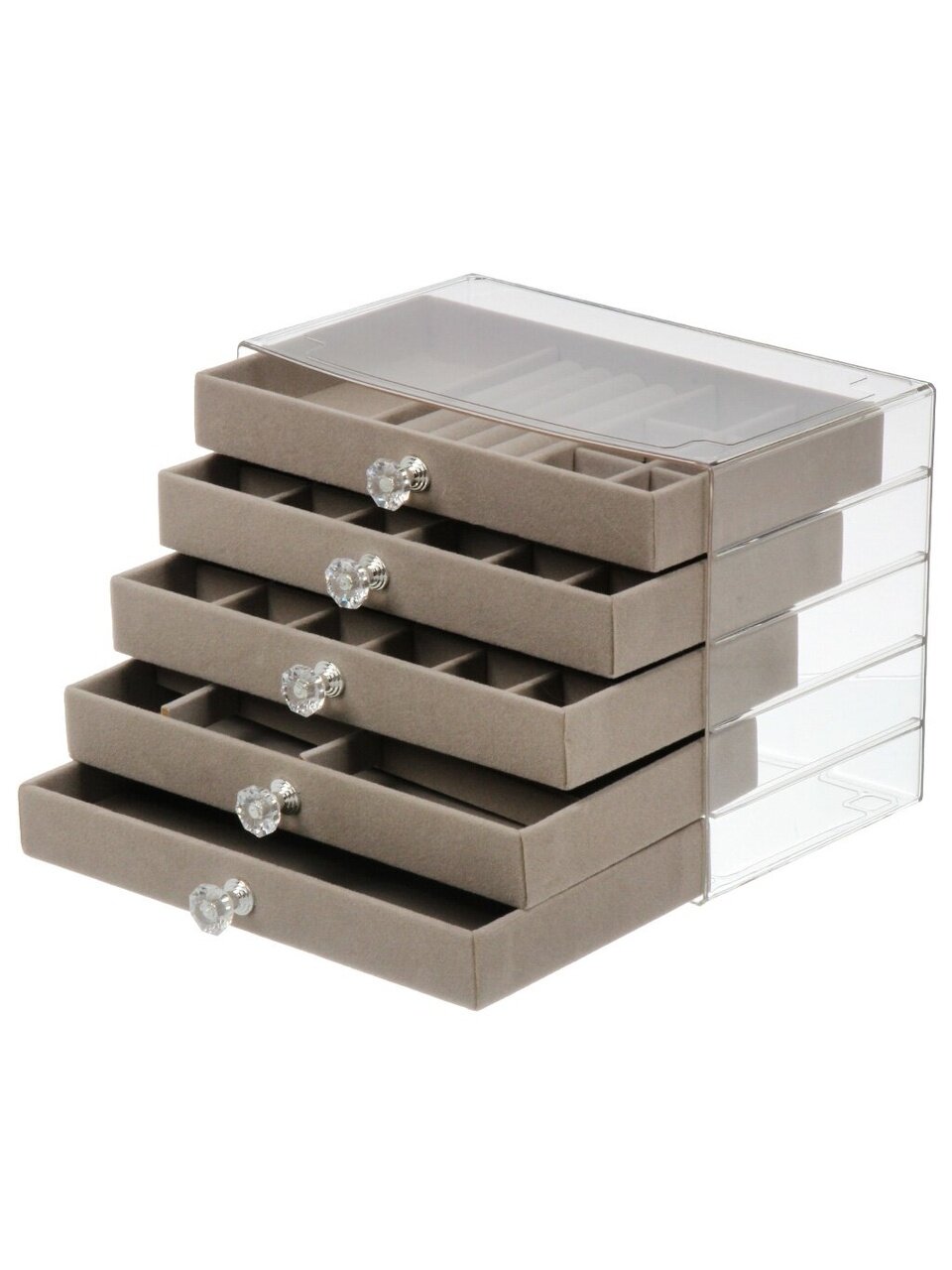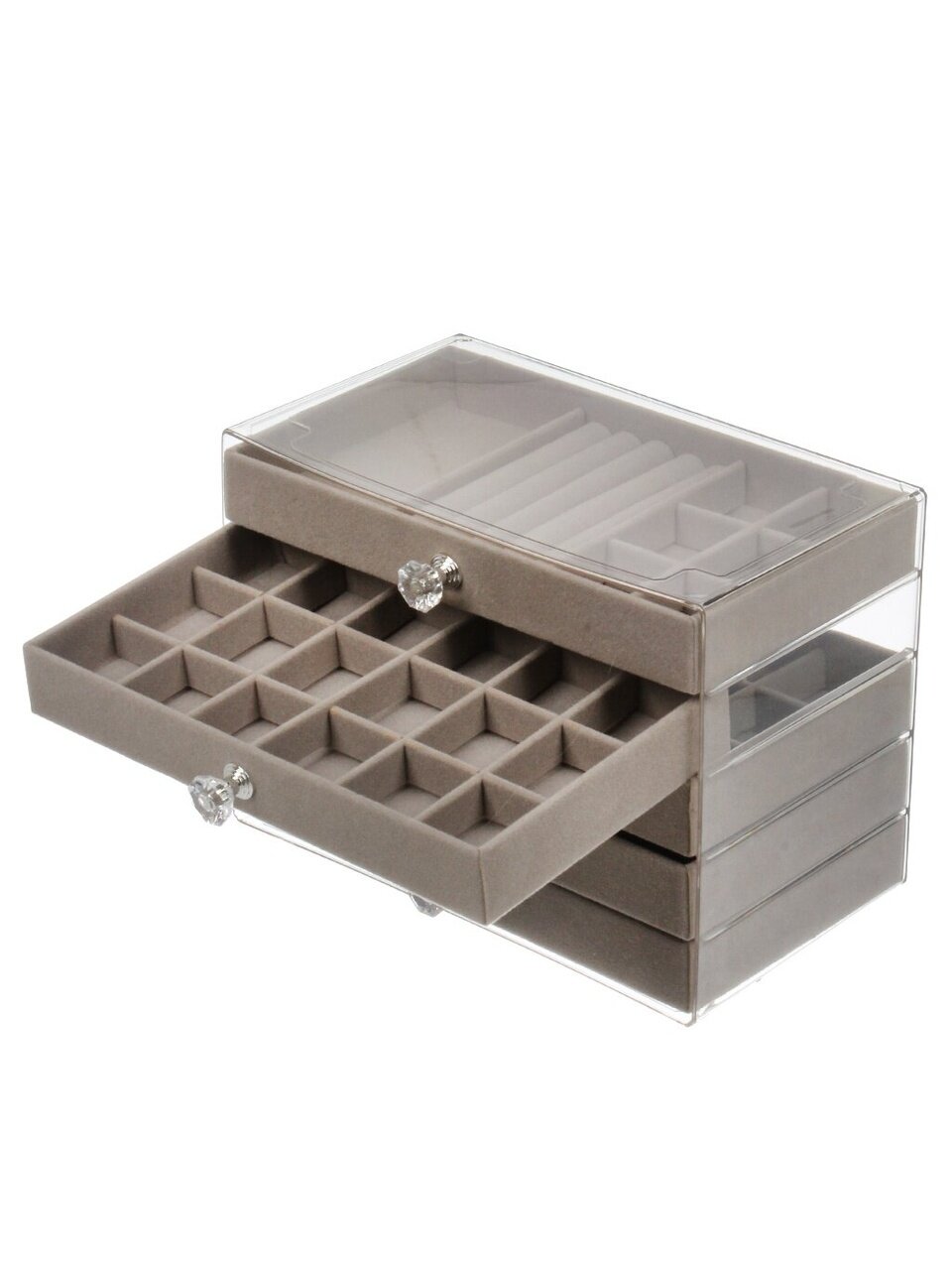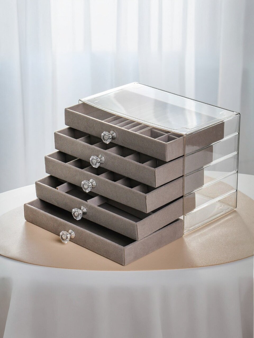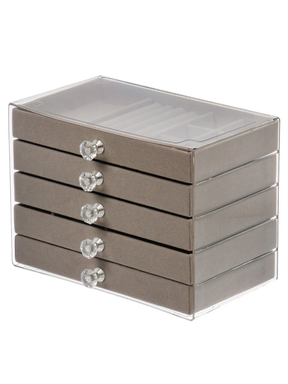 Шкатулка для украшений из полимера — стильное и функциональное решение для хранения ценных аксессуаров. Современный дизайн и универсальный серый цвет позволят гармонично вписаться в любой интерьер спальни, гардеробной или ванной комнаты. Компактные размеры 23.5х13.5х17 см обеспечивают удобное размещение даже в ограниченном пространстве, а продуманная конструкция обеспечивает сохранность украшений и аксессуаров.