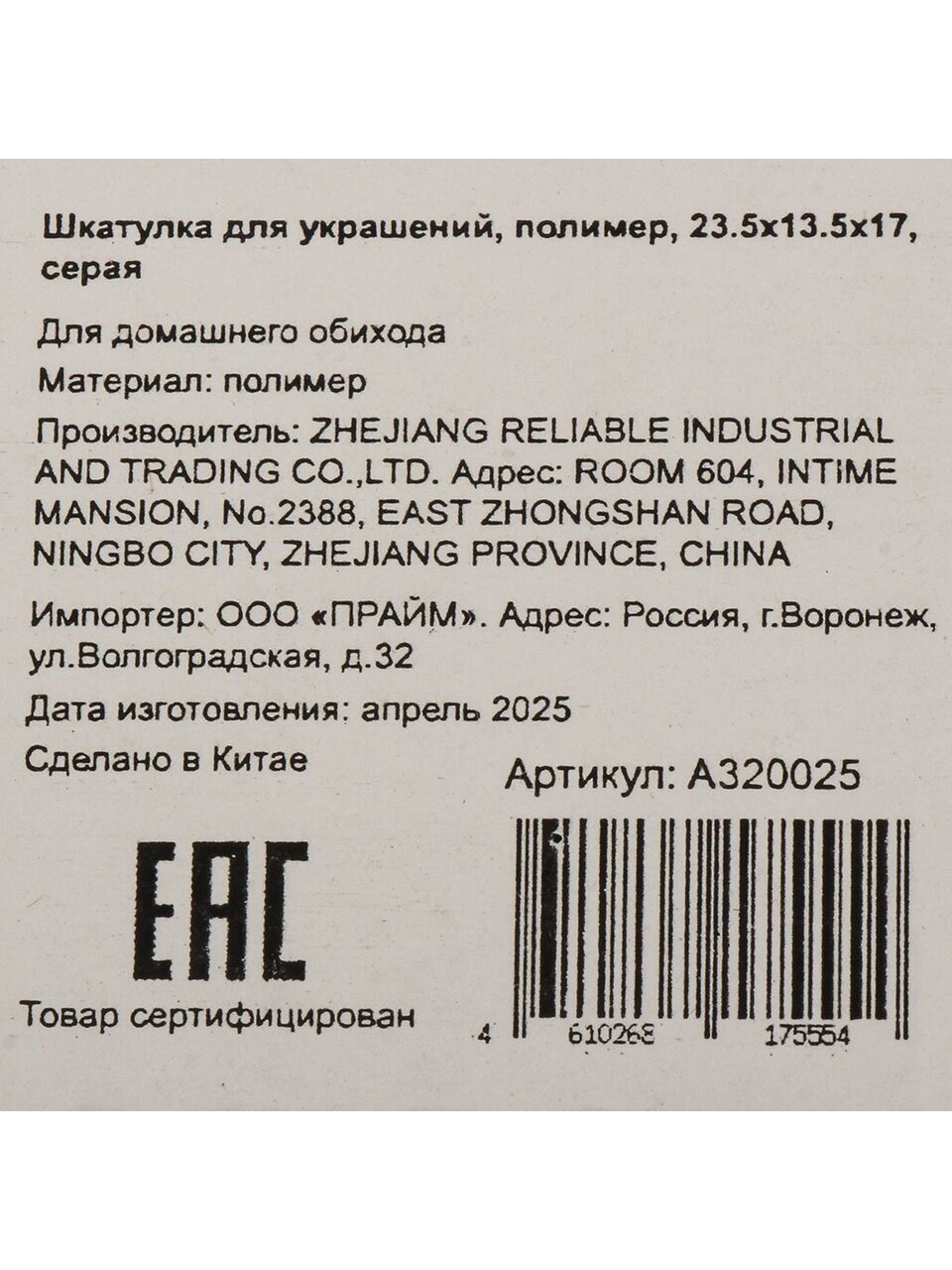 Вы можете приобрести «Шкатулка для украшений, полимер, 23.5х13.5х17 см, серая, A320025» и другие товары в нашем интернет-магазине в Старом Осколе по низким ценам и с бесплатным самовывозом.