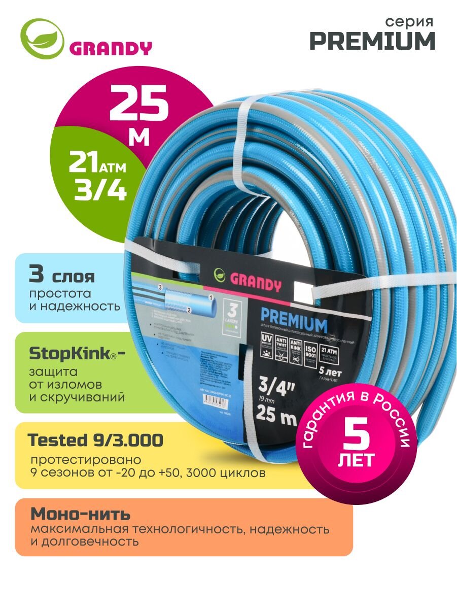 Вы можете приобрести «Шланг поливочный, 3/4 '', внутренний d19 мм, 20 атм, армированный, 25 м, 3 слоя, Grandy, Premium, ПВХ, усиленный, AGL123425-B/PGH-19C-25» и другие товары в нашем интернет-магазине в Клинцах по низким ценам и с бесплатным самовывозом.