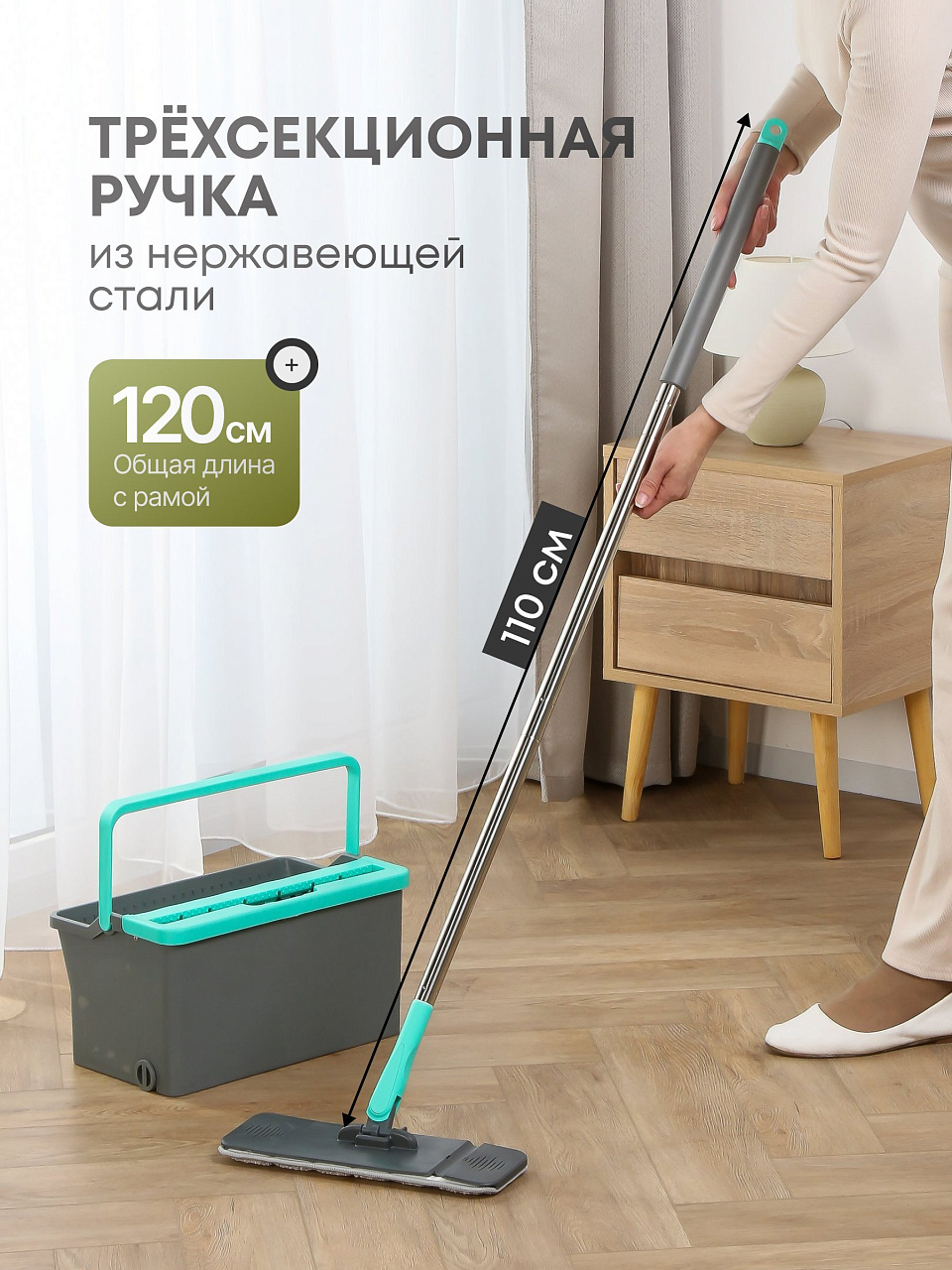 Флаундерная конструкция с карманным креплением насадки обеспечивает плотное прилегание микрофибры к полу. В отличие от зажимов, она не царапает покрытие и позволяет промывать углы без смены инвентаря.