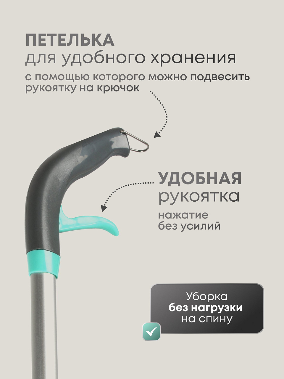 - Универсальность: флаундерная система с креплением на липучке подходит для уборки ламината, кафеля, стен и даже потолков, что делает швабру незаменимой в быту.