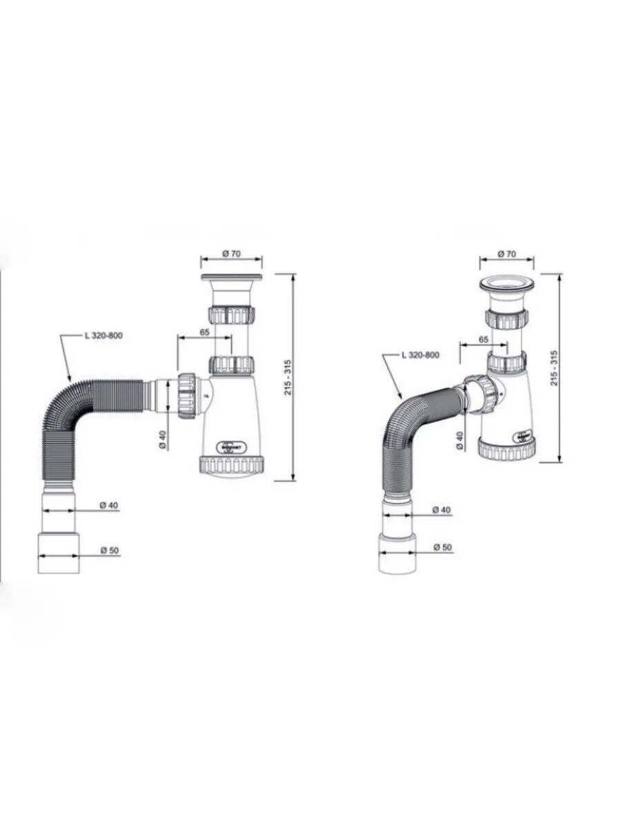 - Длина гофрированного отвода: (мин.-макс.) 320-800 мм;