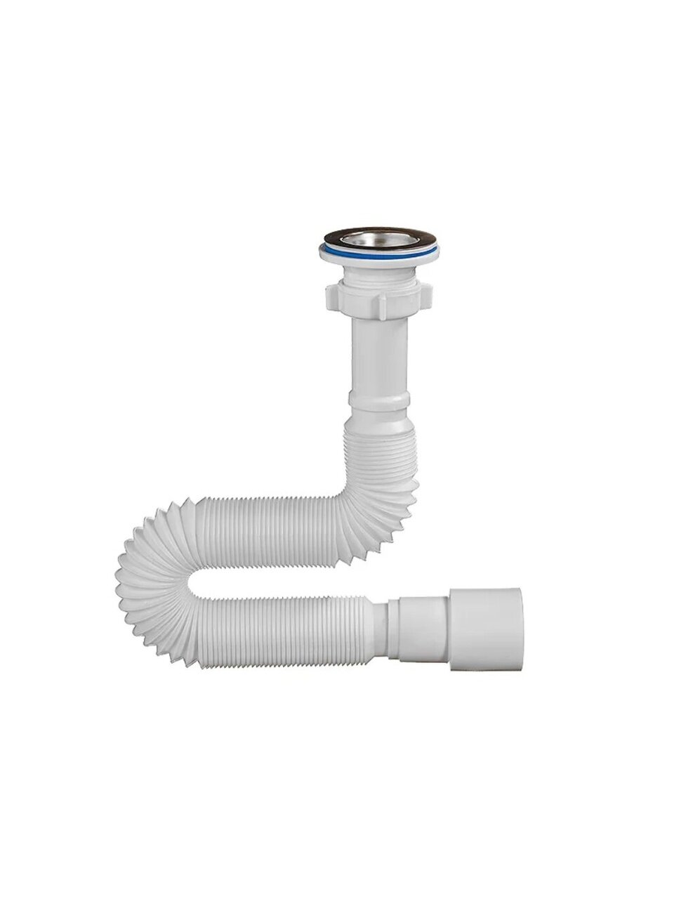 Гофрированный сифон – обладает простой конструкций, его часто используют, если под мойкой мало свободного пространства. Система может принять любую форму, ведь представлена гофрированной трубой, она легко складывается и раскладывается. Это компактный сифон для кухонной мойки.